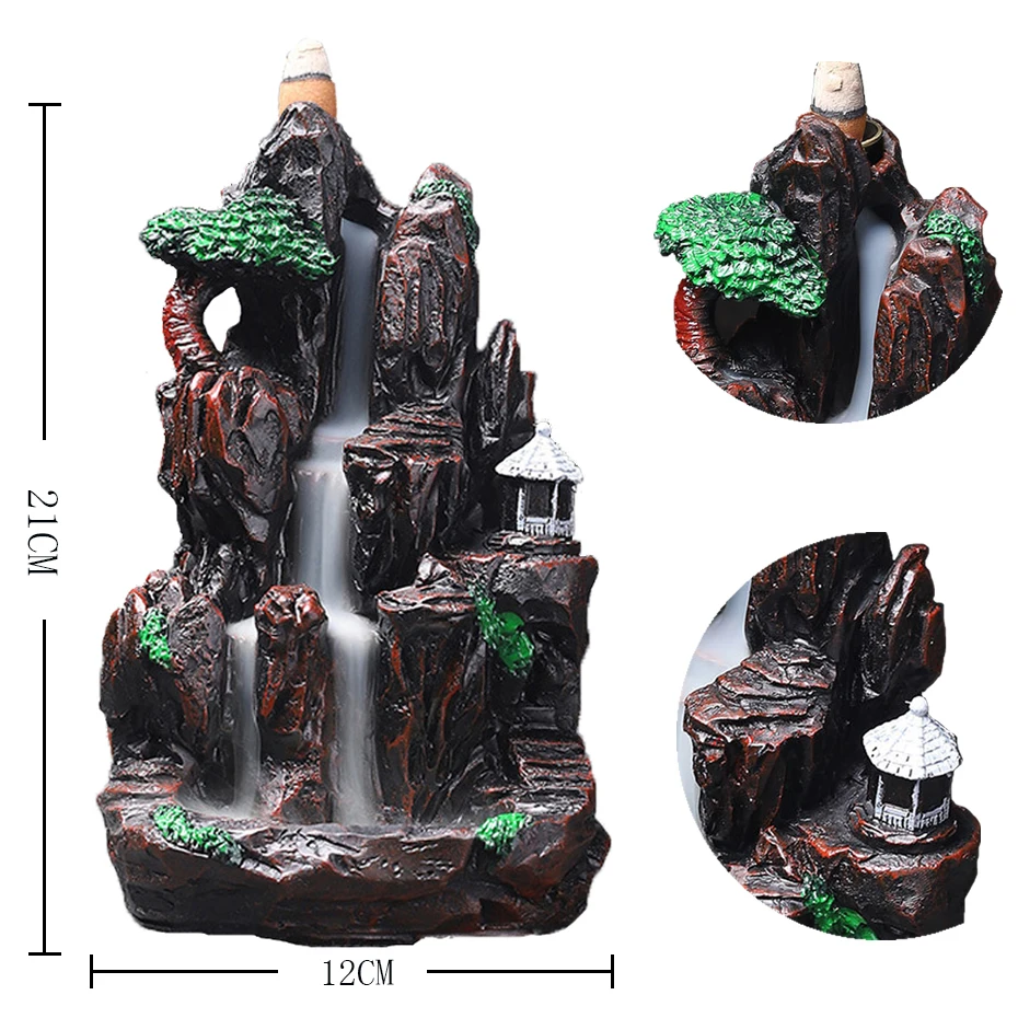Характеристики: горелка для благовоний с мини-основанием для благовоний, горелка для благовоний с водопадом можно использовать Ароматические конусы и палочки для благовоний, мини-ароматическая горелка может использовать Ароматические конусы, палочки для благовоний и катушка для благовоний пять видов. Позвольте вам расслабиться разными способами в различных условиях. Функции и события: Наша горелка для благовоний с водопадом используется в сочетании с конусом из полыни, который помогает очистить воздух, медитировать и расслабляться, снять стресс и улучшить качество сна. Стойка для ароматических горелок reflux может быть помещена в офис, гостиную, спальню, кабинет, комнату для медитации, комнату для йоги, отель и т. д. Даже если нет горящего благовония, его также можно использовать в качестве домашнего украшения. Идеальный подарок для вашей семьи или друзей.
