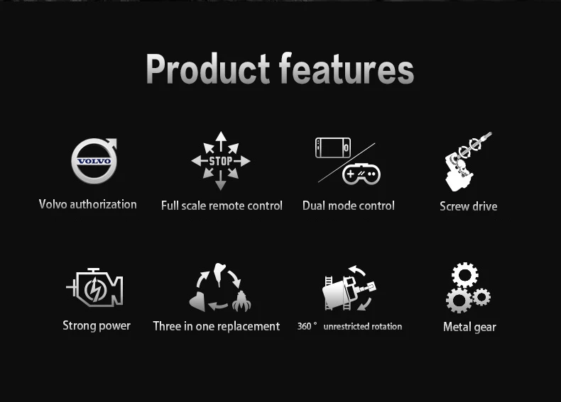 2. Полный пропорциональный контроль, вперед/назад, по часовой стрелке вращение на 360 °/вращение против часовой стрелки на 360 °, большие и маленькие копки управляются отдельно для подъема и падения, И копание ковша является съемным (продукт оснащен тремя аксессуарами для копания ковша, которые могут изменить тип машины)