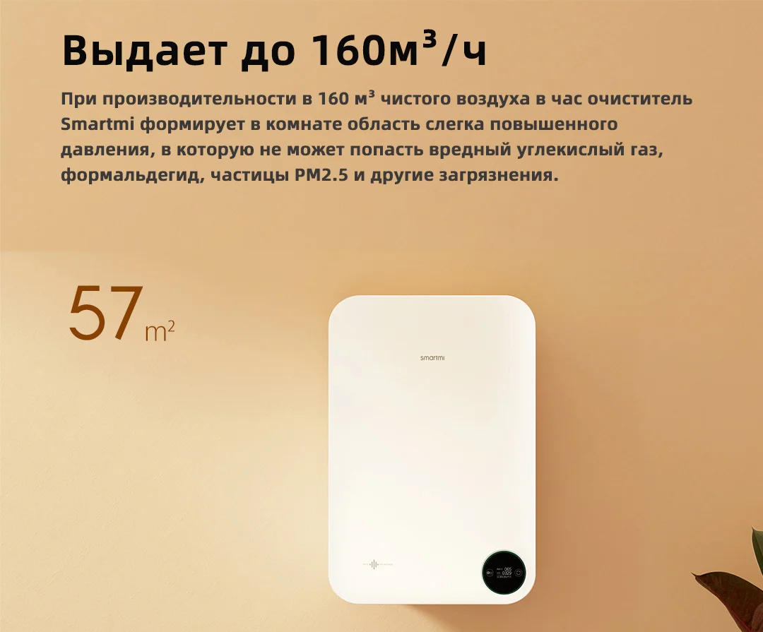 ●160 м³ / ч Большой объем воздуха: Большой объем воздуха 160 м3 / ч создает в помещении небольшое положительное давление, которое эффективно удаляет углекислый газ, формальдегид, PM2,5 и т. Д.