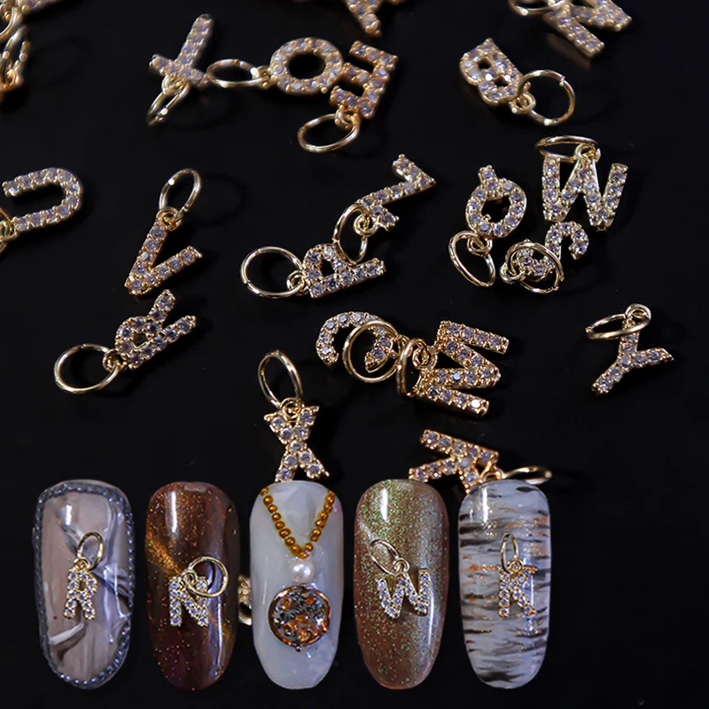 Отзывы о 26 букв циркона модные пирсинг ногтей искусственная кожа золотой алфавит сплав