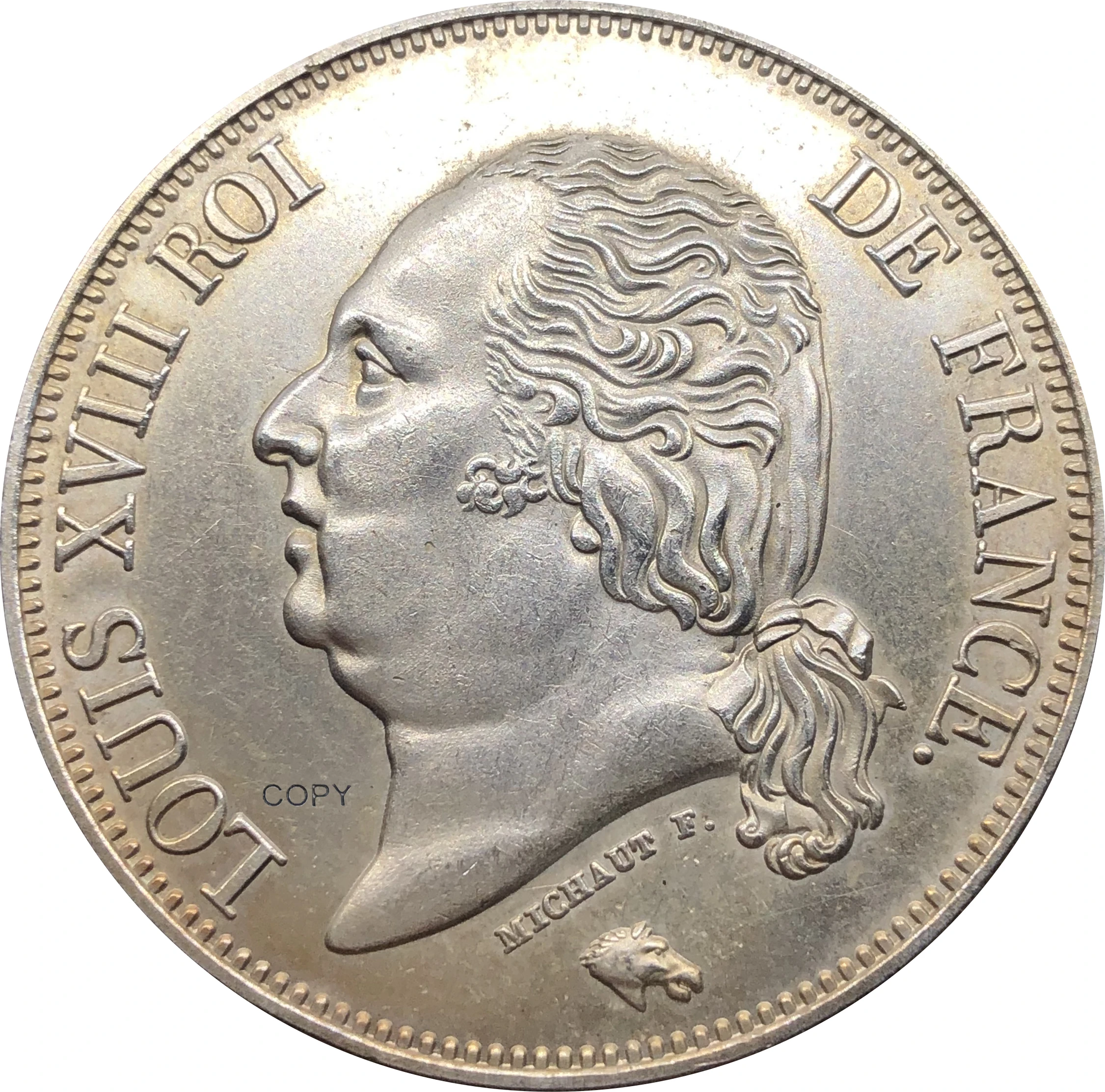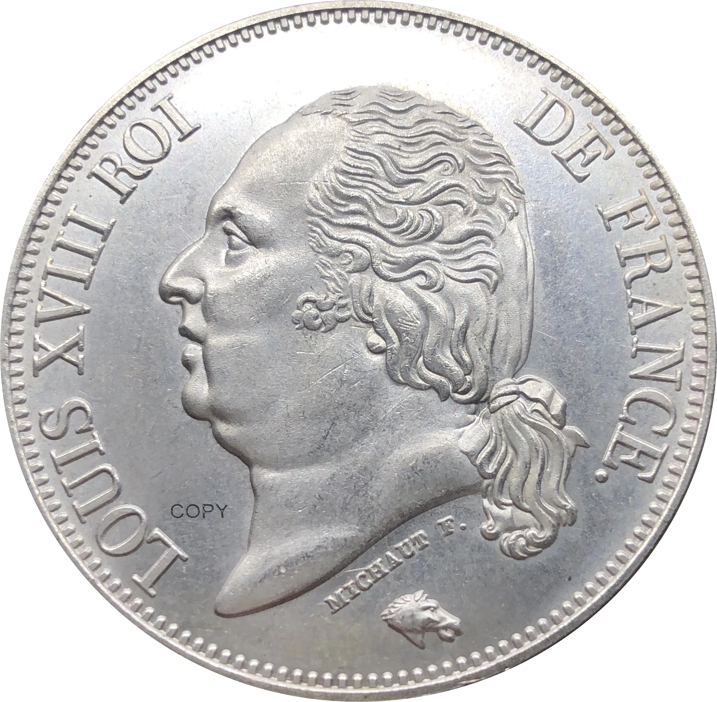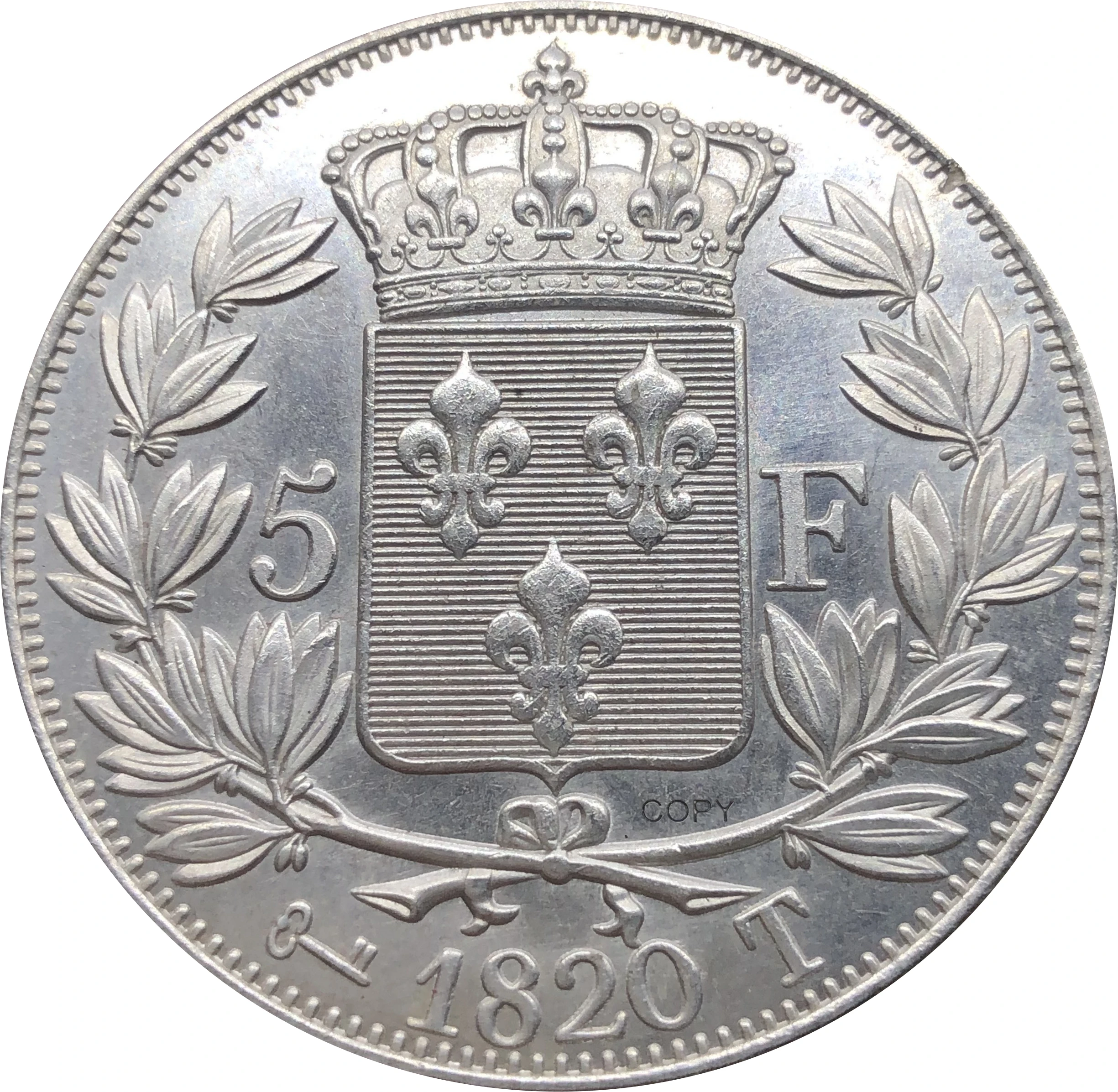 Отзывы о Франция 1820 т 5 франков Луис восемь Лицо слева копия монеты из серебра 90% пробы