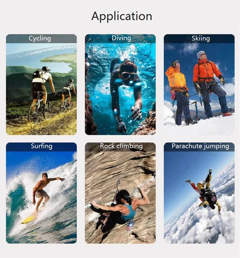 Application: Cycling,Diving,Skiing,Surfing,Rock climbing,Parachute jumping...