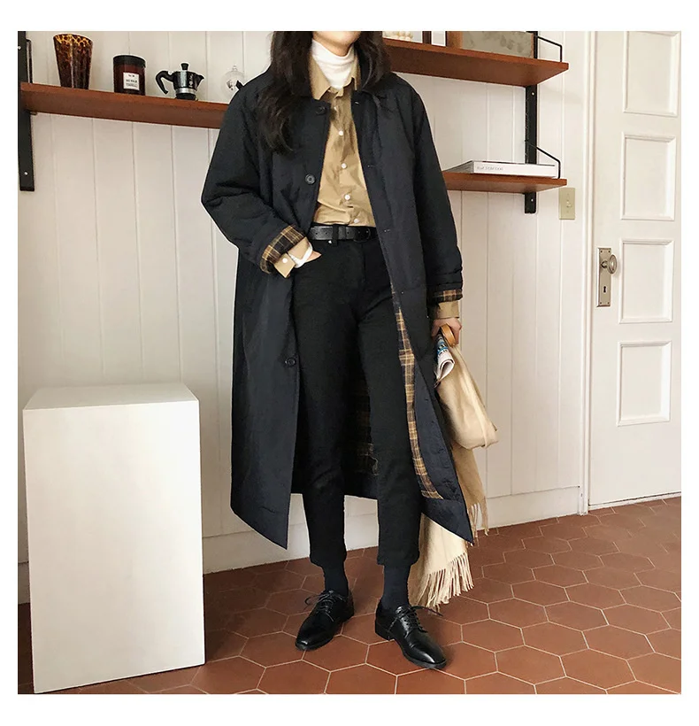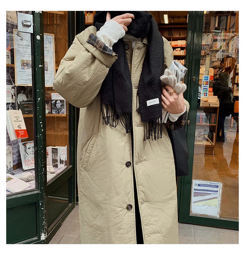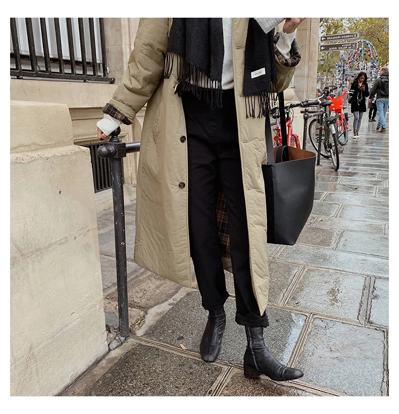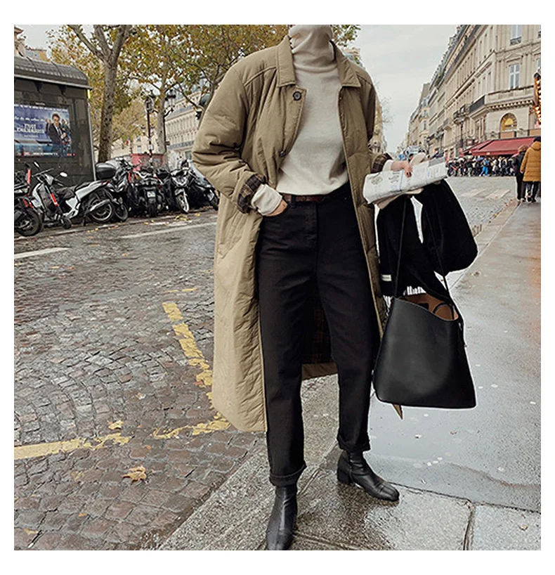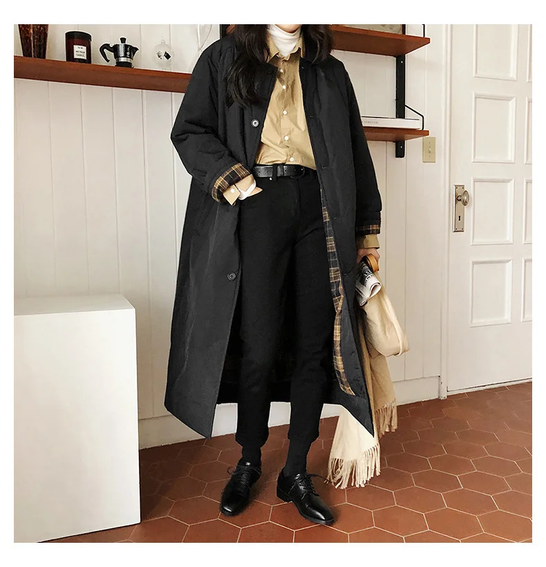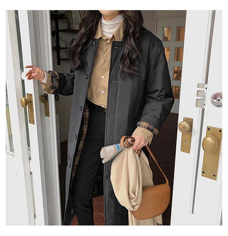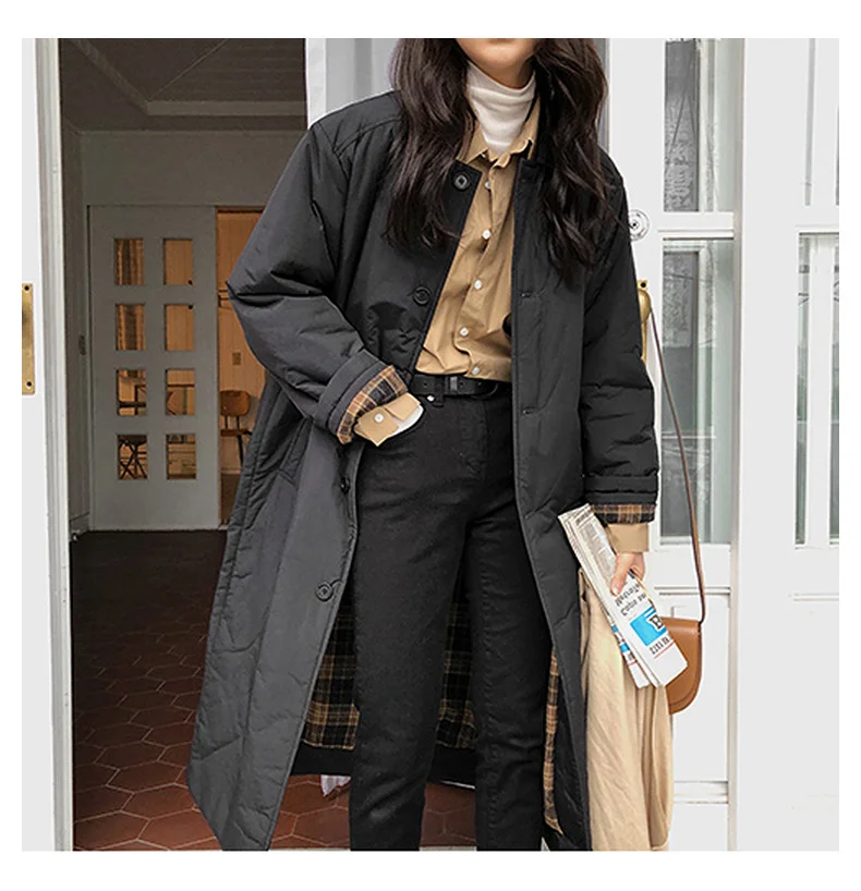 Отзывы о Женский пуховик в клетку однобортный Корейском стиле с отложным воротником зима