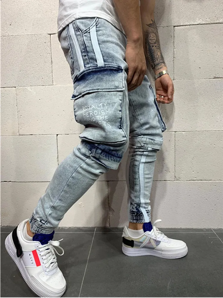 Отзывы о Мужские джинсы в полоску сбоку брюки-карандаш стиле хип-хоп облегающие со