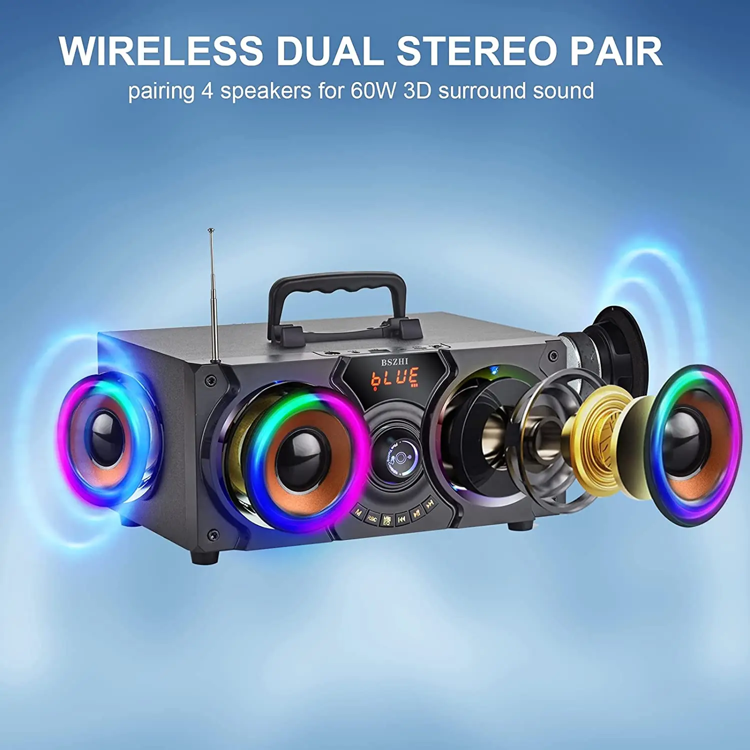 ♫【Bluetooth-динамик 】-громкий стереозвук 60 Вт A35 bluetooth-колонки с сабвуфером 2,2 канальный дизайн имеет 4 громких динамика, включая двойные басы, двойные Твиттеры и заднюю тяжелую басовую направляющую трубку. 60 Вт громкий bluetooth-динамик Поддерживает настройки высоких частот и басов, вы можете настроить подходящий бас и высокие частоты самостоятельно при воспроизведении песен. Портативный динамик идеально подходит для путешествий в помещении, вечерние, бассейн, пляж или кемпинг. Это принесет вам беспрецедентный опыт прослушивания.