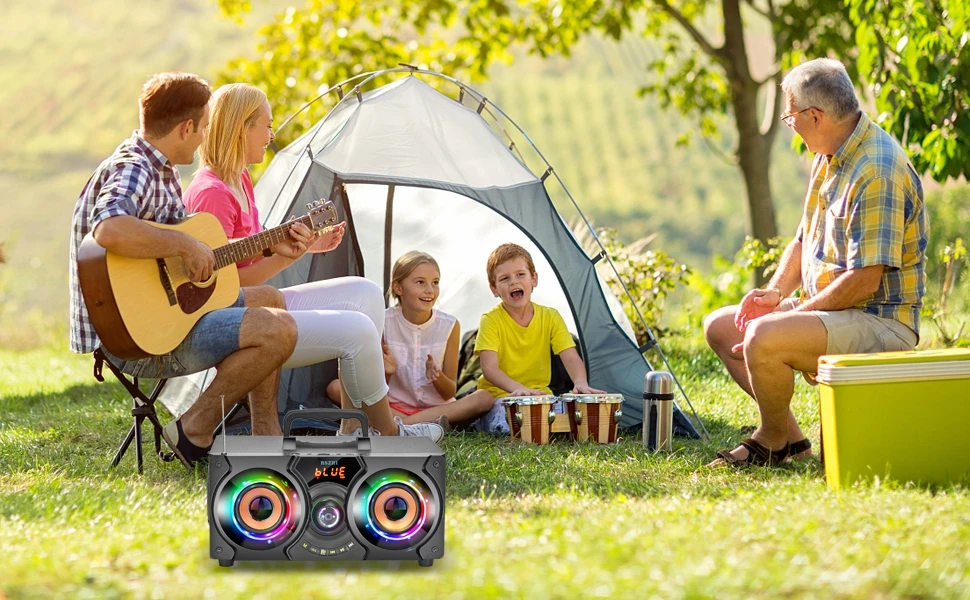 ♫【 Вечерние Динамик 】 -- 【Charming красочные lights】The Bluetooth вечерние Динамик с прыжки Красочный Светодиодный свет, и на экране одни мигающие Строб делает прослушивание музыки более динамичным. Подходит для семейных, дворовых вечеринок, маленьких посиделок, чудесное освещение позволит вам погрузиться в музыку и создать вечерние атмосферу. Мульти-функциональный вечерние Динамик Поддержка fm-радио, Bluetooth, воспроизведение музыки в формате TF, AUX вход, 3,5 мм разъем для подключения микрофона, u-диск, воспроизведение музыки, интеллигентая (ый) дистанционный пульт и цифровым дисплеем.