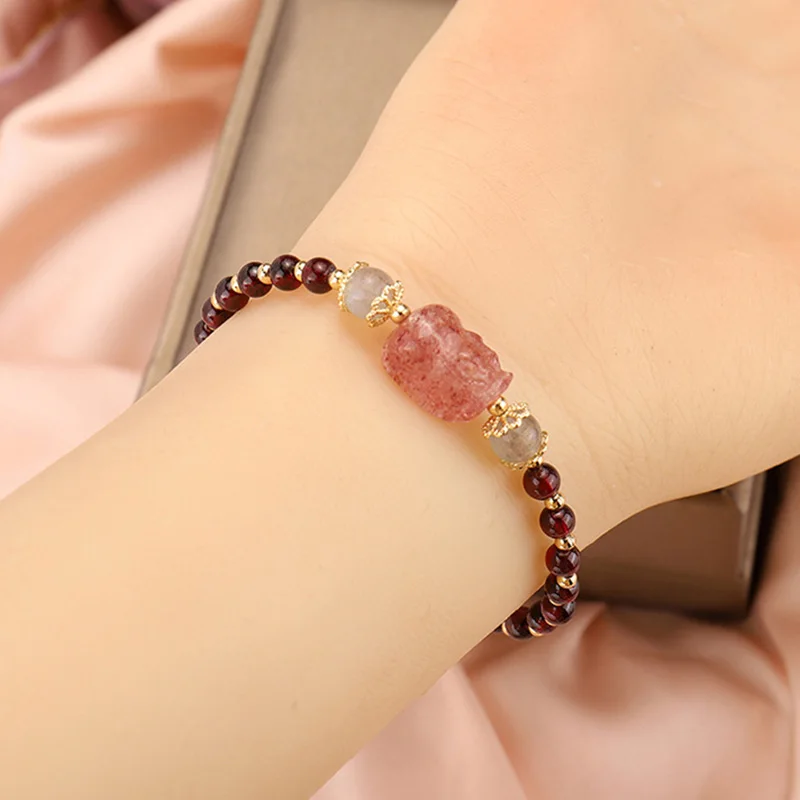 Клубничный кристалл гранат смелый Национальный стиль дизайн пряжки счастливые браслеты женские ювелирные изделия