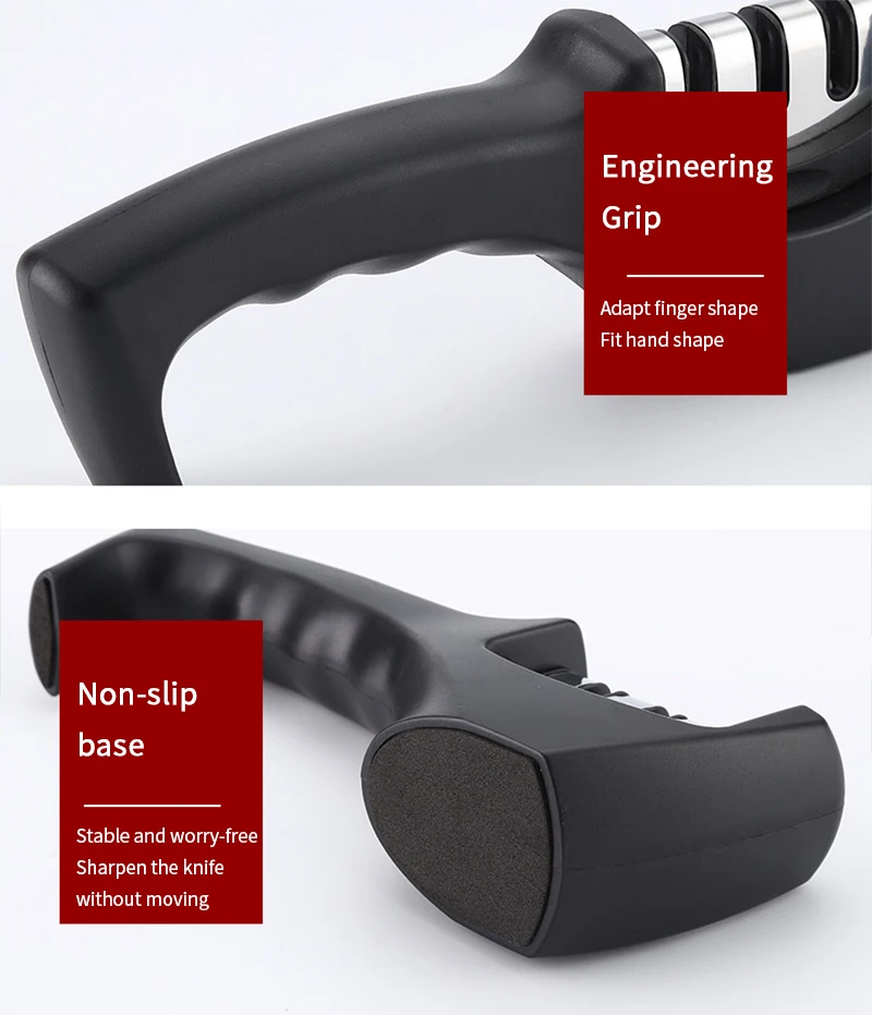 Эта точилка подходит для всех видов ножей. Держите нож острым и готовым к использованию. Это очень удобно в использовании, девушки могут легко контролировать его, и это безопасно и долговечно.