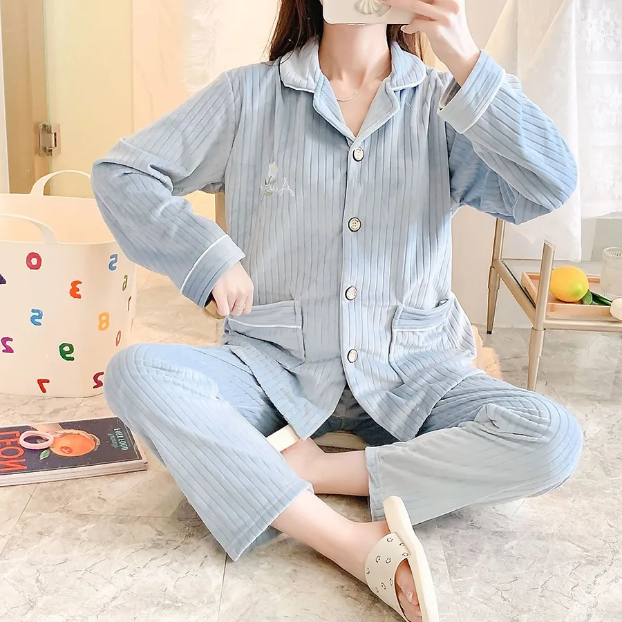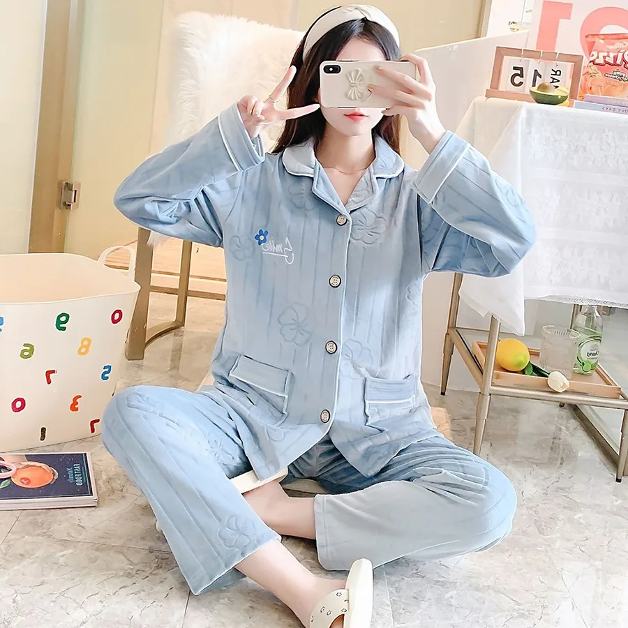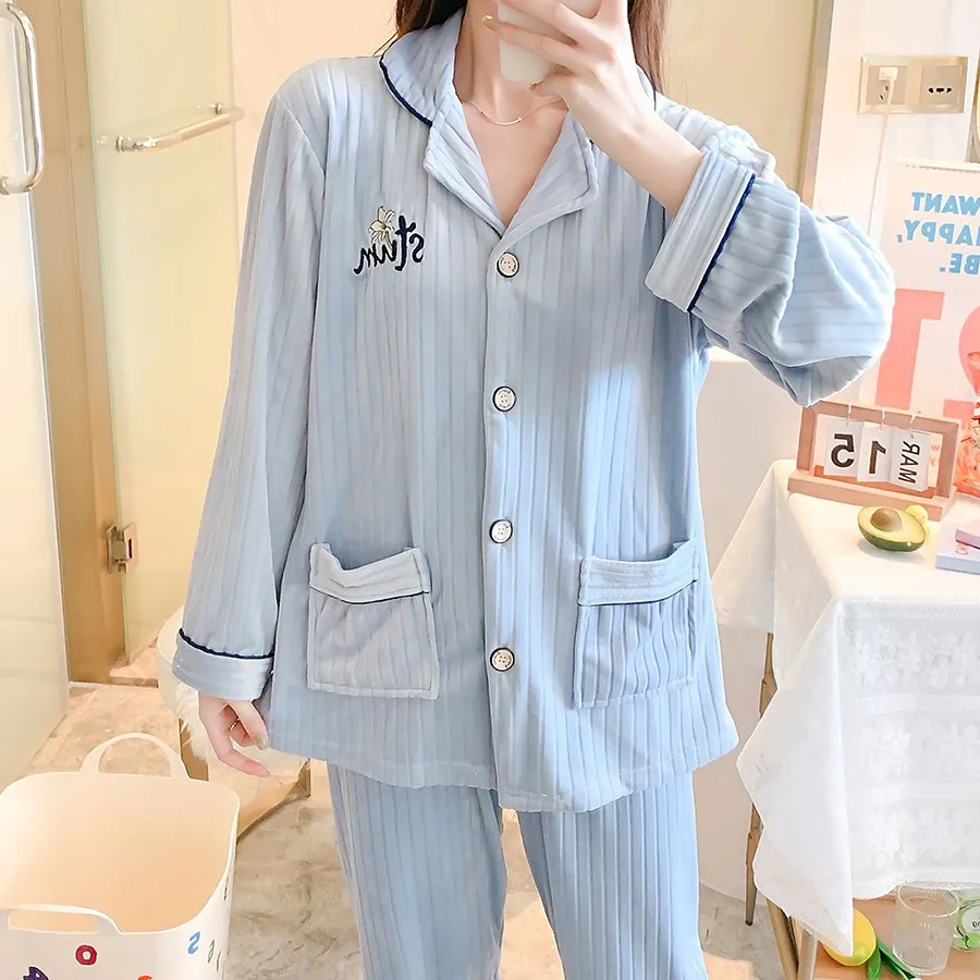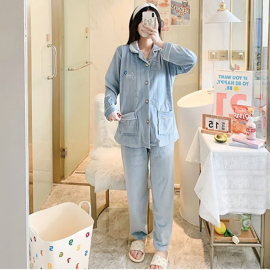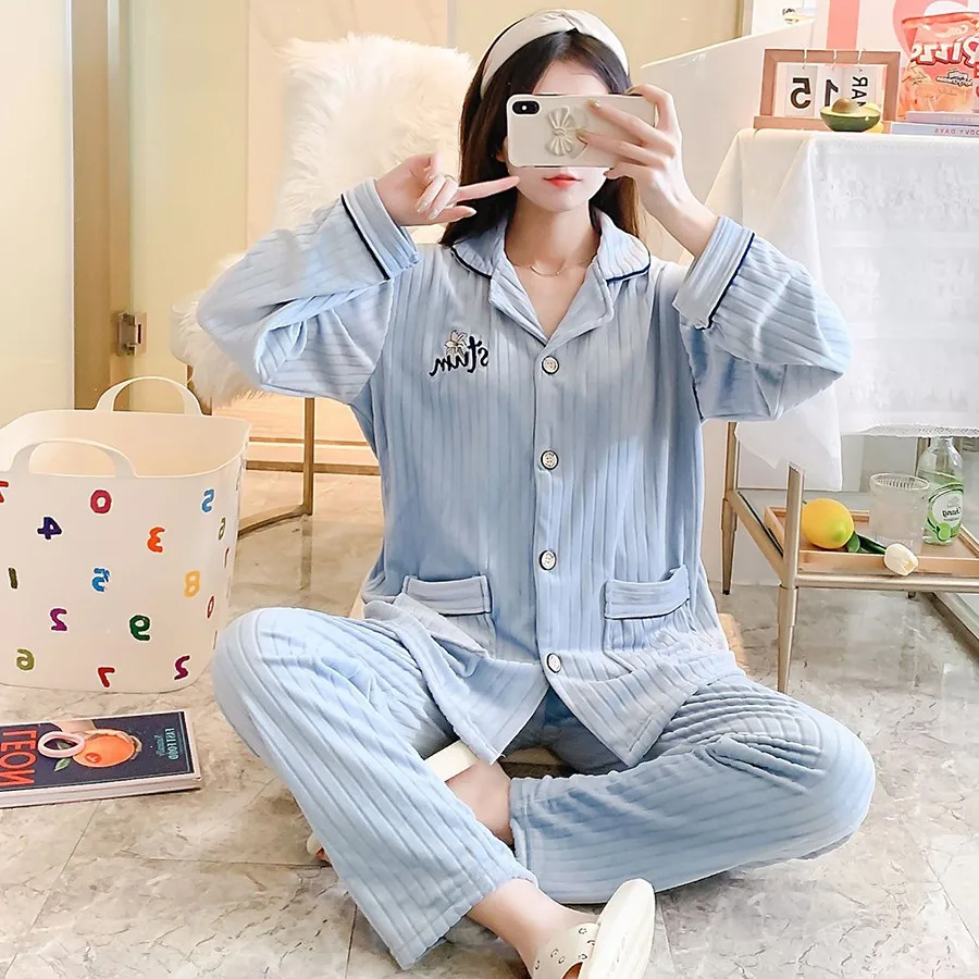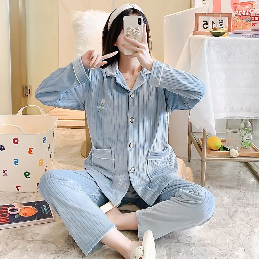 Отзывы о Женская бархатная теплая Домашняя одежда из 2 предметов осенне-зимний синий