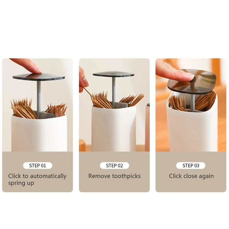 Автоматический Диспенсер Для Зубочисток с дизайном всплывающего держателя, просто нажмите сверху и он будет открыт.