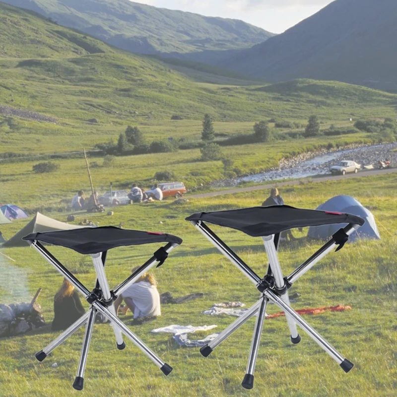 Portable Folding Camping Chair Foldable Stool Black Small Stainless Steel Oxford Seat Outdoor for Fishing Hiking Travel