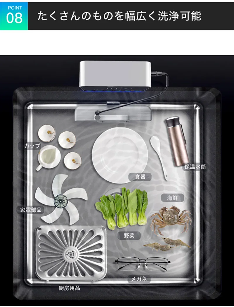 Этот ультразвуковой очиститель обеспечивает высокий уровень мощной стирки 300 Вт/400 Вт. Бесчисленные микропузырьки, которые выводятся одновременно, и ударная волна разрушает и удаляет грязь со скоростью одной секунды.