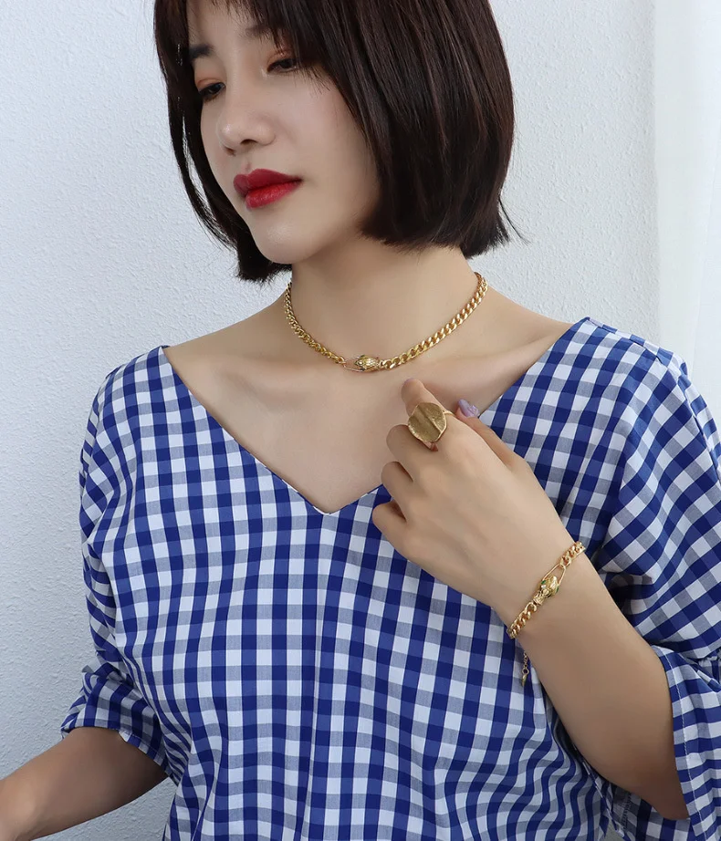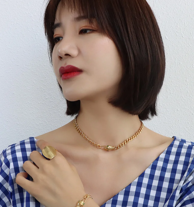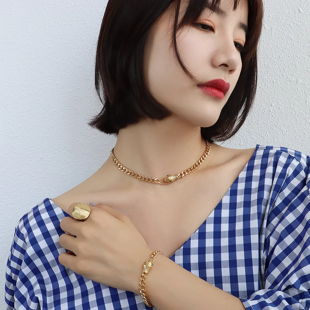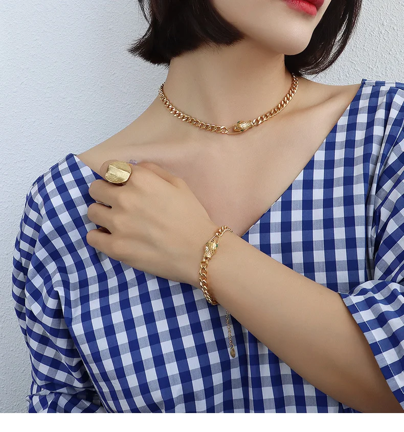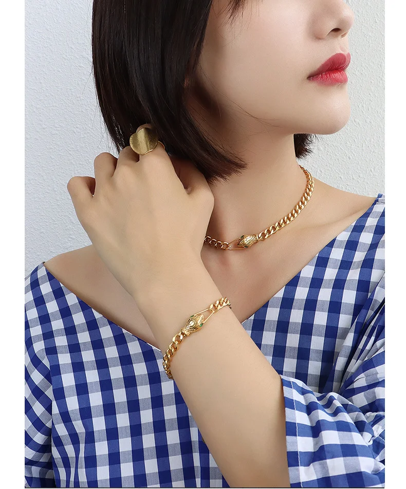 Отзывы о Ожерелье и браслет из нержавеющей стали с зеленым цирконием головой змеи