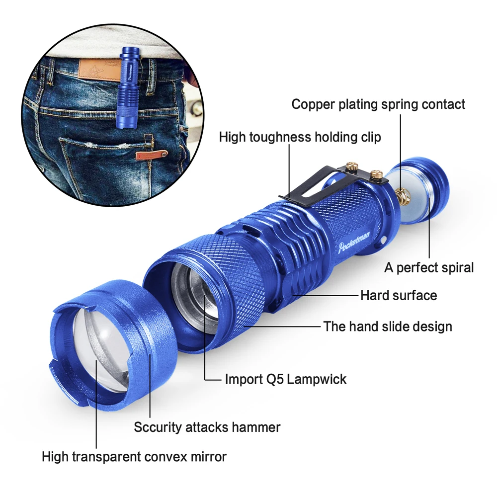 Ультра яркий: мини-фонарь разработан с Q5 светодиодный. Супер яркая лампа отвечает всем вашим потребностям в освещении. Он питается от 1 х 14500 3,7 V Батарея/1x AA (не входят в комплект поставки) покрыта нескользким материалом дизайн позволяет вам иметь лучший опыт.