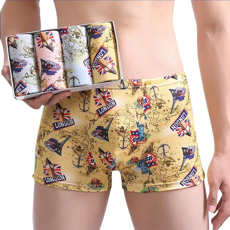 Отзывы о 4pcs Color Printed Letters Flag Shorts Breathable Seamless Underpants Sexy Boxer Ventilate Comfortable Short For Man Underwear - купить по