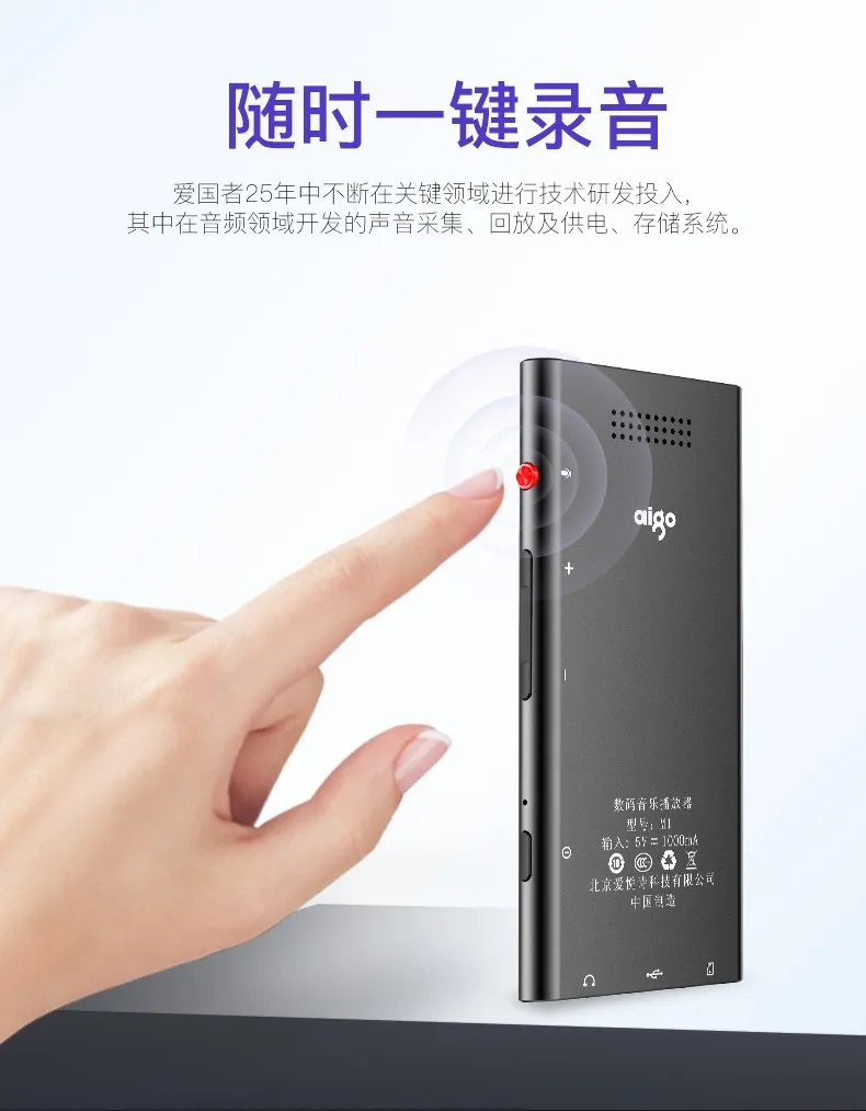 Отзывы о Mp3-плеер aigo M1 металлический сенсорный экран BT4.1 с шагомером стерео динамик Lossess HIFI