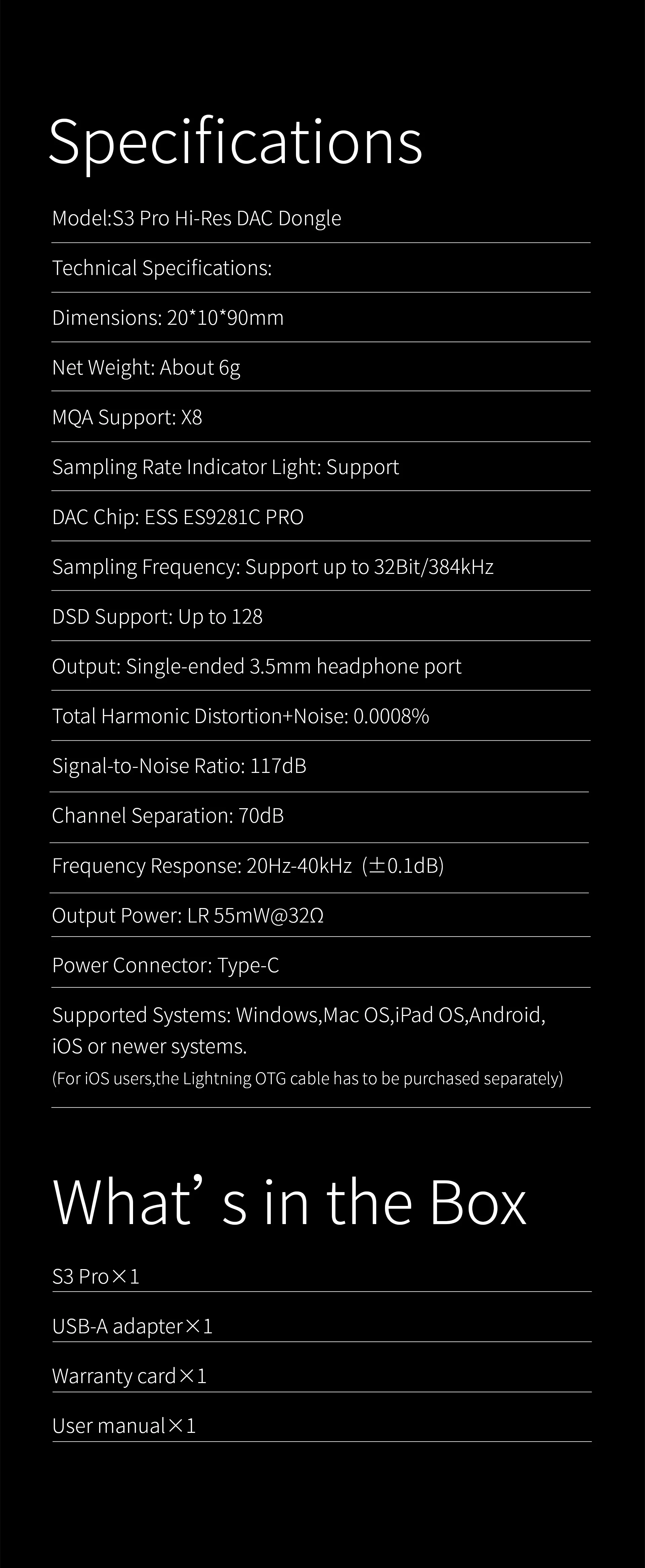 Достаточно удобный для практичного использования! -Ищу ЦАП-ключ, который не только поддерживает проводное управление воспроизведением/паузой и функциями громкости, но также поддерживает телефонные звонки, не Вытаскивайте его из своего мобильный телефон, когда поступает звонок? Значит, S3 PRO-ваш лучший выбор.