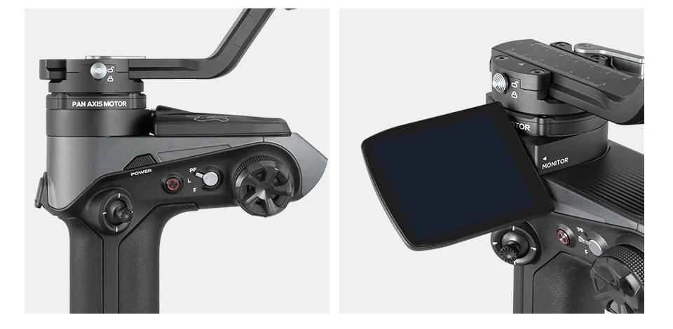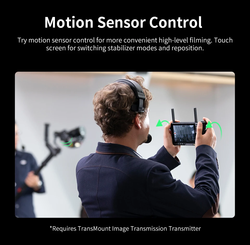 "Try motion sensor control for more convenient high-level filming. Touch screen for switching stabilizer modes and reposition.