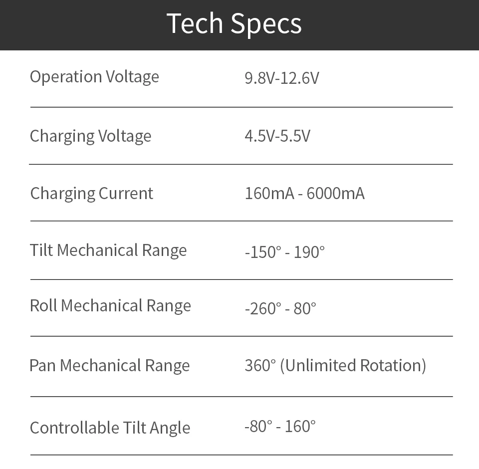 Strong structure with upgraded motor torque and performance. Compatible with lens combos of mirrorless cameras and DSLR cameras. Supports extensions of professional accessories