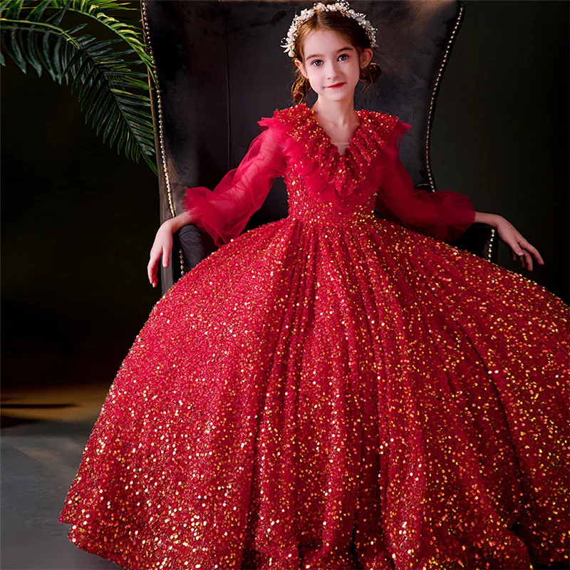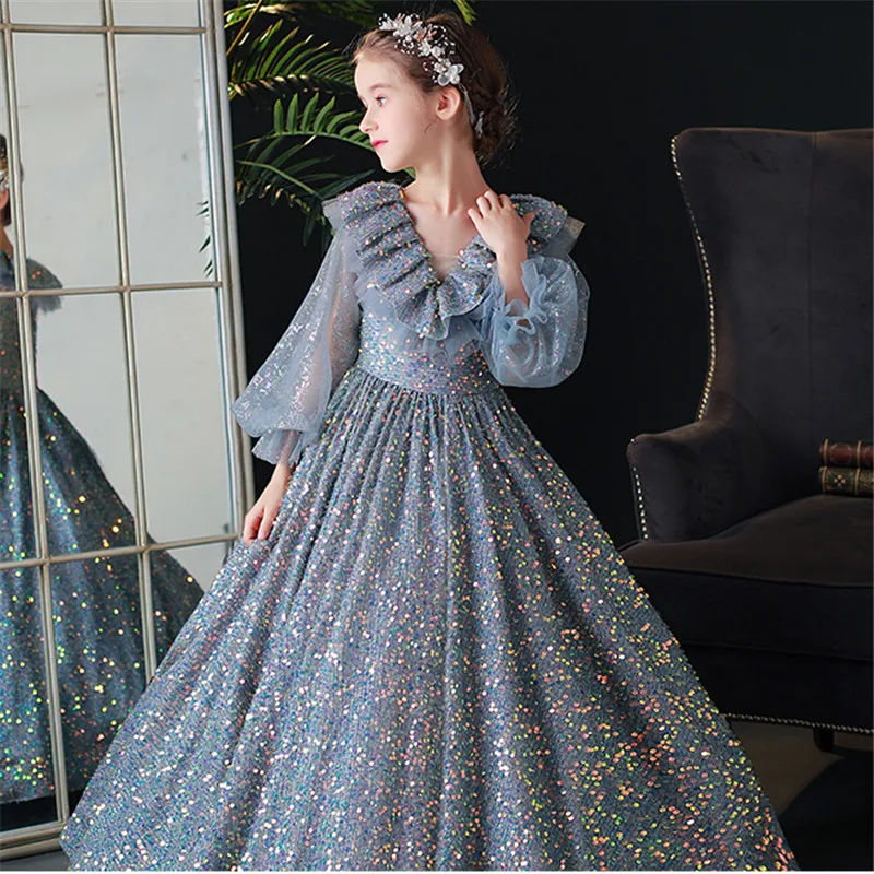 Отзывы о Детское вечернее платье принцессы на день рождения с длинными рукавами в