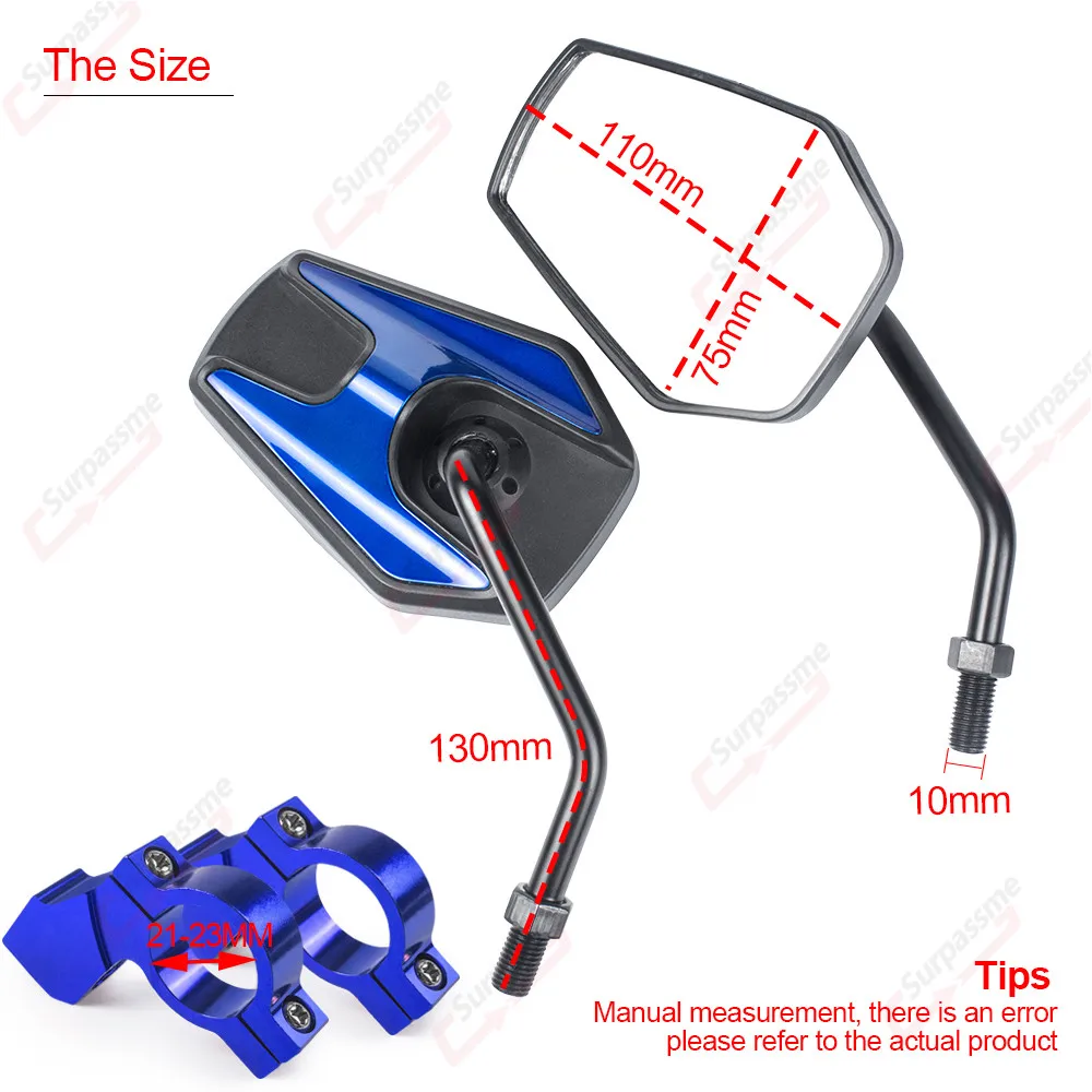 -Количество: 1 пара (левое и правое зеркало),1 пара зажимов для руля