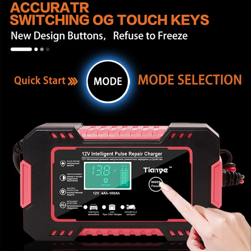 Полностью автоматическое автомобильное зарядное устройство, 12 В, дисплей, умное зарядное устройство, запасные аккумуляторы, зарядное устройство, s, влажная, сухая свинцово-кислотная батарея