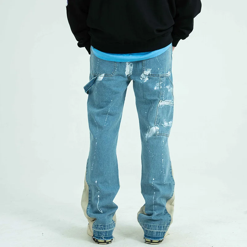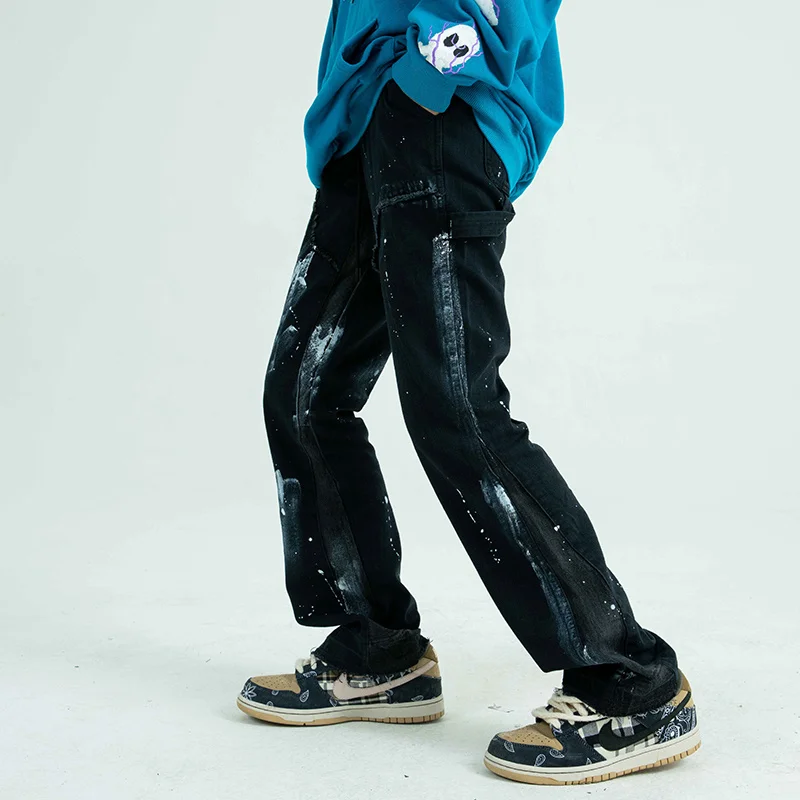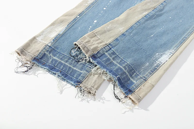 Отзывы о Джинсы мужские потертые с цветными блоками уличная одежда на шнурке Свободные