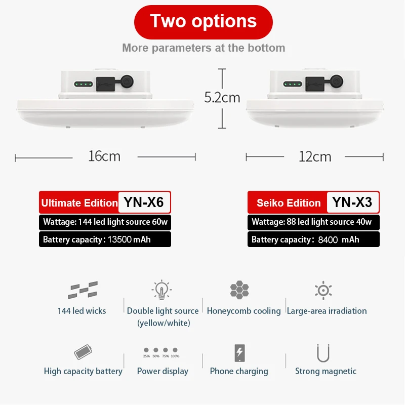 | Особенности:1. Аварийное освещение, ночное освещение, отдых на открытом воздухе, Кемпинг, туризм, охота, альпинизм, рыбалка, чтение и т. д.2. Многоцелевой светодиодный светильник для кемпинга, аварийная ночь, настольная лампа, настенный подвесной светильник, безопасный и энергосберегающий; Портативный с высокой яркостью.3. Для кемпинга, чтения, стола, стены, катания на лодках, рыбалки, ремонта автомобилей и так далее.Характеристики:1. Материал изделия: АБС-пластик2. Емкость аккумулятора: YN-X3:8400 мАч, YN-X6:13500 мАч3. Тип батареи: YN-X3:3 шт. 18650 батарей, YN-X6:3 шт. 21700 батарей4. Размер: YN-X3:12x12 см, YN-X6:16x16 см5. С дисплеем заряда6. Порт зарядки: Type-C7. Нажмите первую кнопку на белый светильник, нажмите вторую кнопку на теплый белый светильник и нажмите долго, чтобы отрегулировать яркость светильник.8. Светильник: белый и теплый белыйПримечания:1. Возможны незначительные отклонения в размере из-за ручного измерения, различных методов измерения и инструментов.2. Изображение может не отражать фактический цвет изделия из-за различных фотографирования светильник, угол и дисплей монитора. |