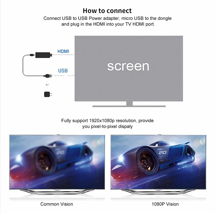 Экранное устройство необходимо подключить к экрану. Вам нужно найти порт hdmi телевизора, подключите устройство на экране. Оно может поддерживать разрешение 1080p.