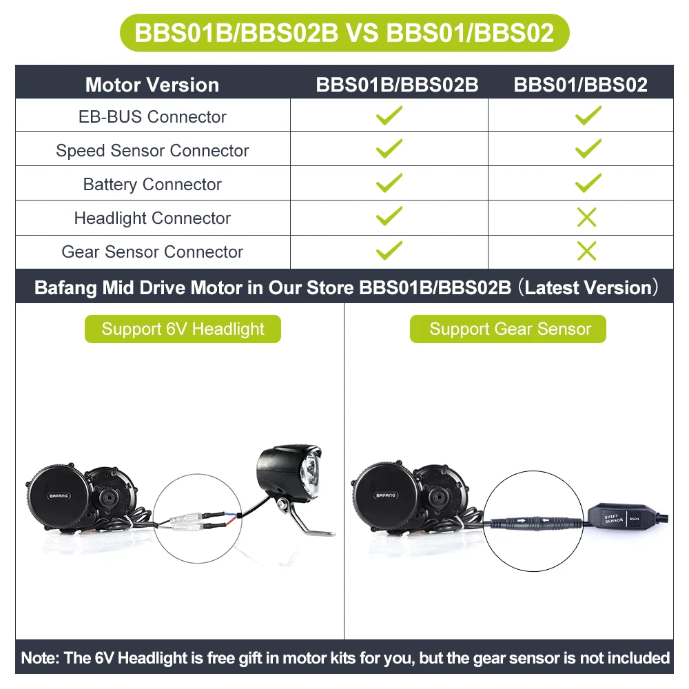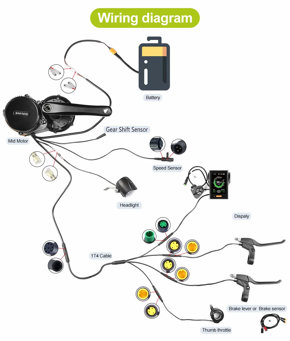 1. 250W, 350W и 500W BAFANG средние приводные двигатели BB68mm; 750W BAFANG Средний приводной двигатель BB68mm и BB100mm; 1000W BAFANG Средний приводной двигатель BB68mm, bb100мм и bb120мм.