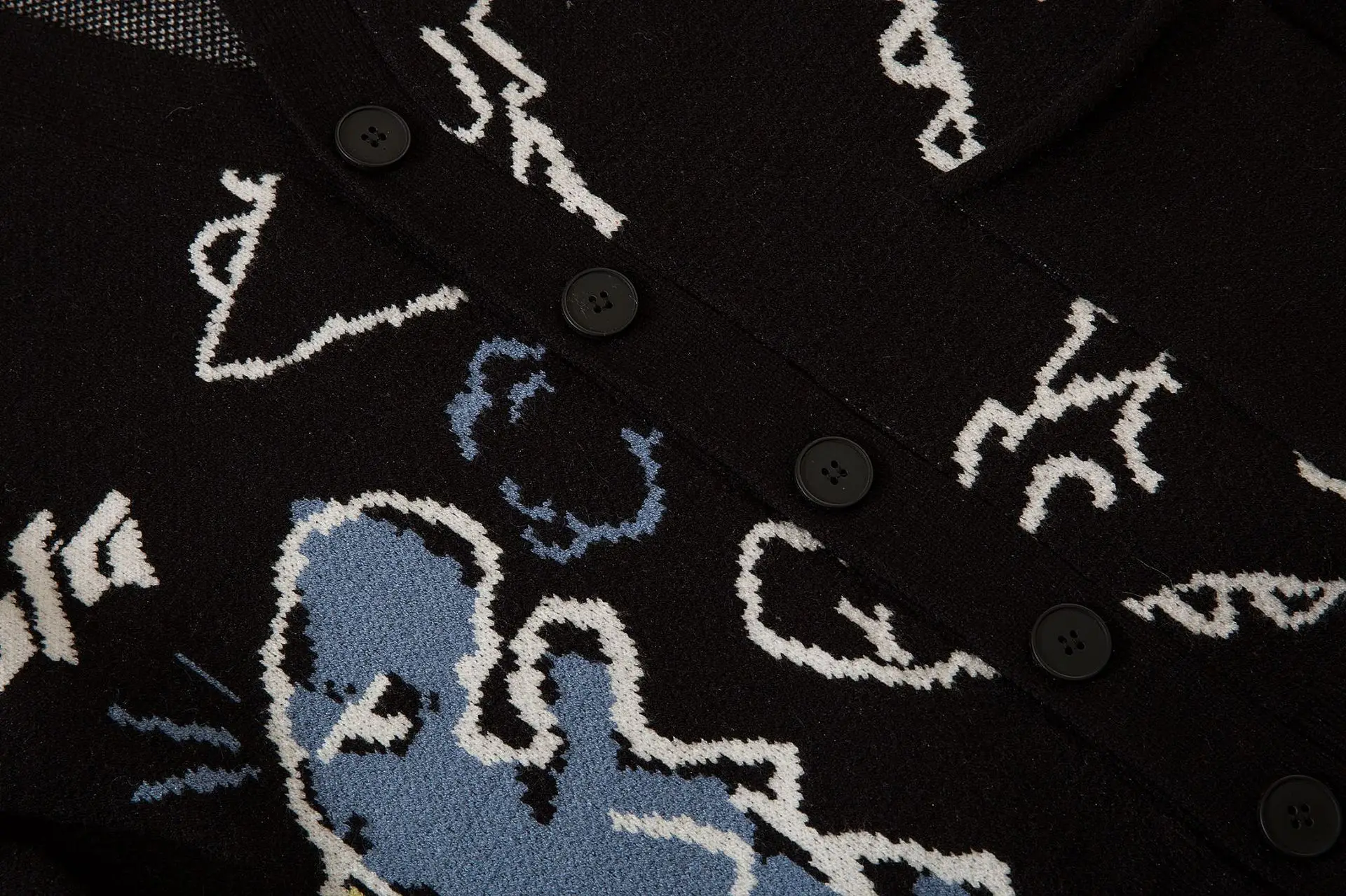 Отзывы о Свитер мужской в стиле Харадзюку винтажный кардиган оверсайз с рисунком