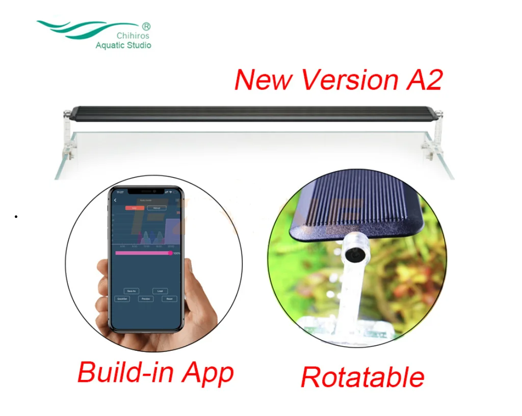 Светодиодный светильник серии CHIHIROS A IIОсветительный набор специально разработан для применения в сажающихся резервуарах. Эти светодиоды хорошего качества используются в наборе освещения Chihiros, и дизайн сопоставим с обычным использованием освещения T8 и T5 в аспекте интенсивности и яркости освещения, тем временем предлагая гораздо больше экономии энергии для электричества. Набор освещения CHIHIROS поставляется с высоким качеством,ВращающийсяИ прозрачная акриловая подставка, дающая вам отражение набора освещения, как будто она плавает в воздухе.Каждый светодиодный комплект освещения серии Chihiros A II поставляется сВстроенный контроллерКоторые действуют как таймер, регулировка светильник интенсивности и может установить закат, восход эффект. Подходит для резервуаров с пресной водой.
