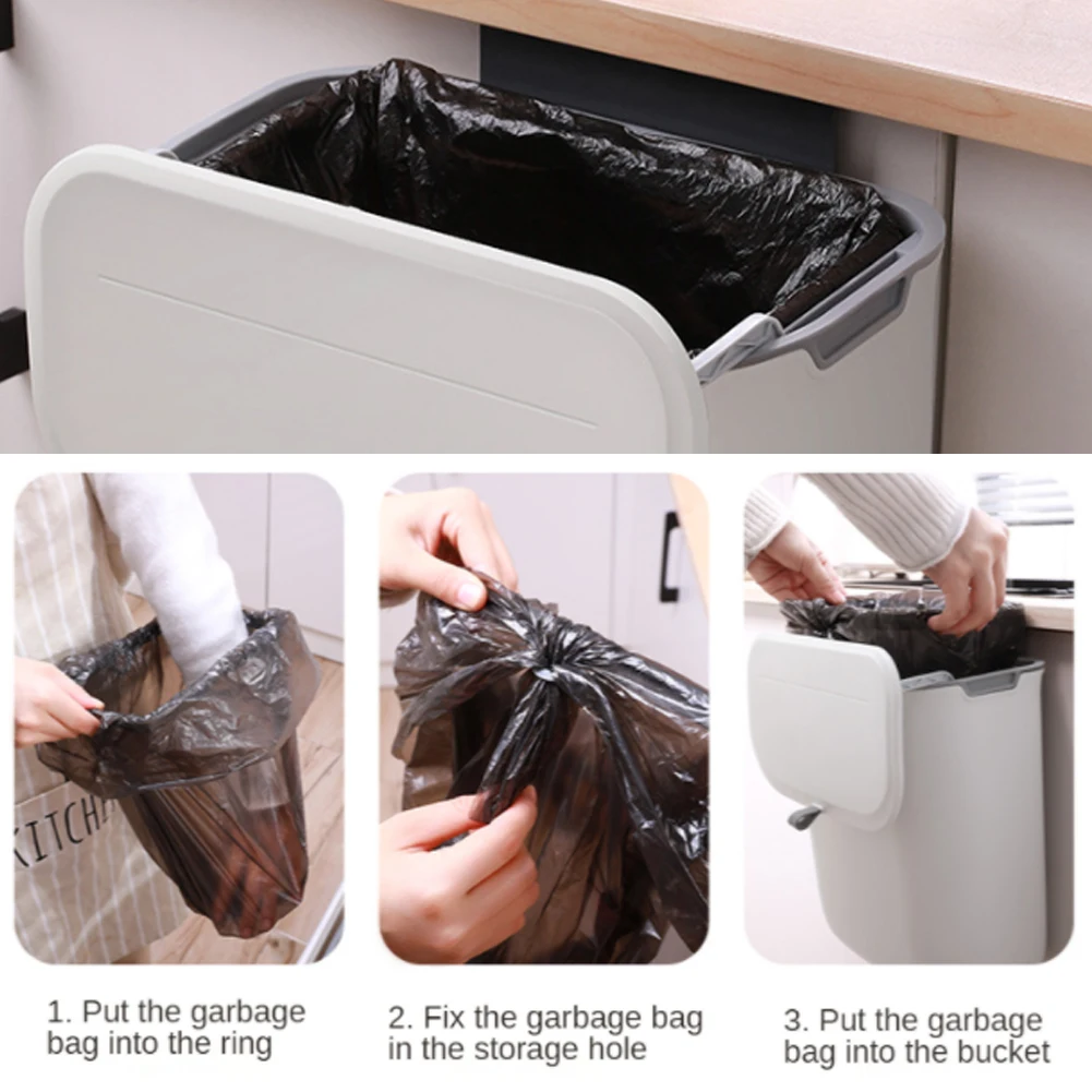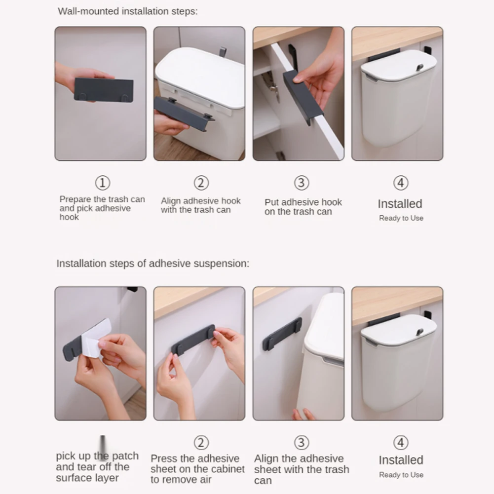 * 2. Особенности подвесного дизайна, это мусорное ведро поставляется с крючком и доской для подвешивания, супер экономия пространства, которая идеально подходит для большинства дверей шкафа, дверей кладовой, кухонные шкафы (толщина двери должно быть меньше, чем 0,98 дюймов/2,5 см).