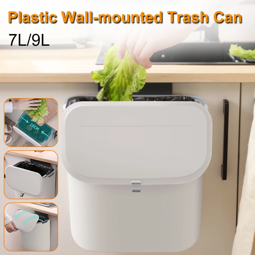 7Л/9л настенное мусорное ведро с корзина для мусора с крышкой кухонный шкаф дверь подвесное мусорное ведро мусорная корзина для автомобиля мусорное ведро