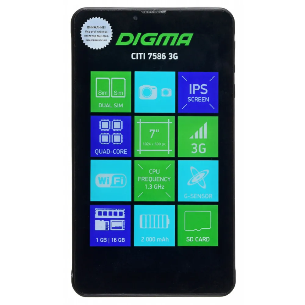 Отзывы о Планшет Digma CITI 7586 3G 1112449/1Gb/16Gb/7"/IPS/1024x600/WiFi/BT/GPS/Android 8.1/microSD 64Gb/2000mAh/TS7203MG/черный -