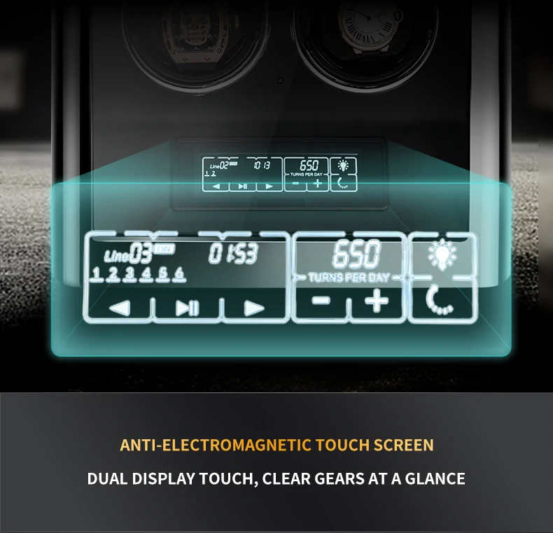 Материал корпуса для фортепиано полностью ручной работы, обработан достаточным количеством раскрашивания-сушки-печати под современными направлениями. Элегантный дизайн и высококлассные вставки из кожзаменителя, которые подойдут для украшения интерьера высокого класса и создают уникальную атмосферу культуры в различных стилях декора. Видимое стекло закаленное для хорошей защиты. Управление сенсорным ЖК-экраном позволяет настроить каждый намотку на желаемые настройки для каждой часы.