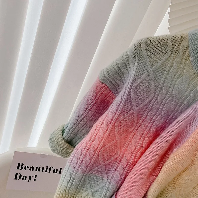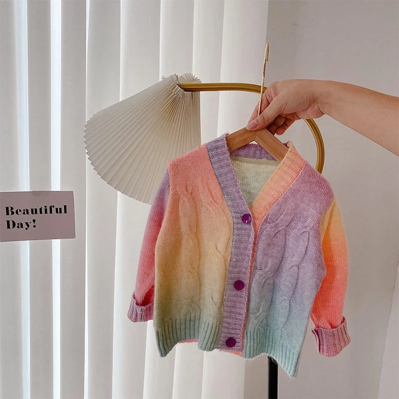 Отзывы о Вязаный кардиган для маленьких девочек Детский свитер с рисунком радуги одежда