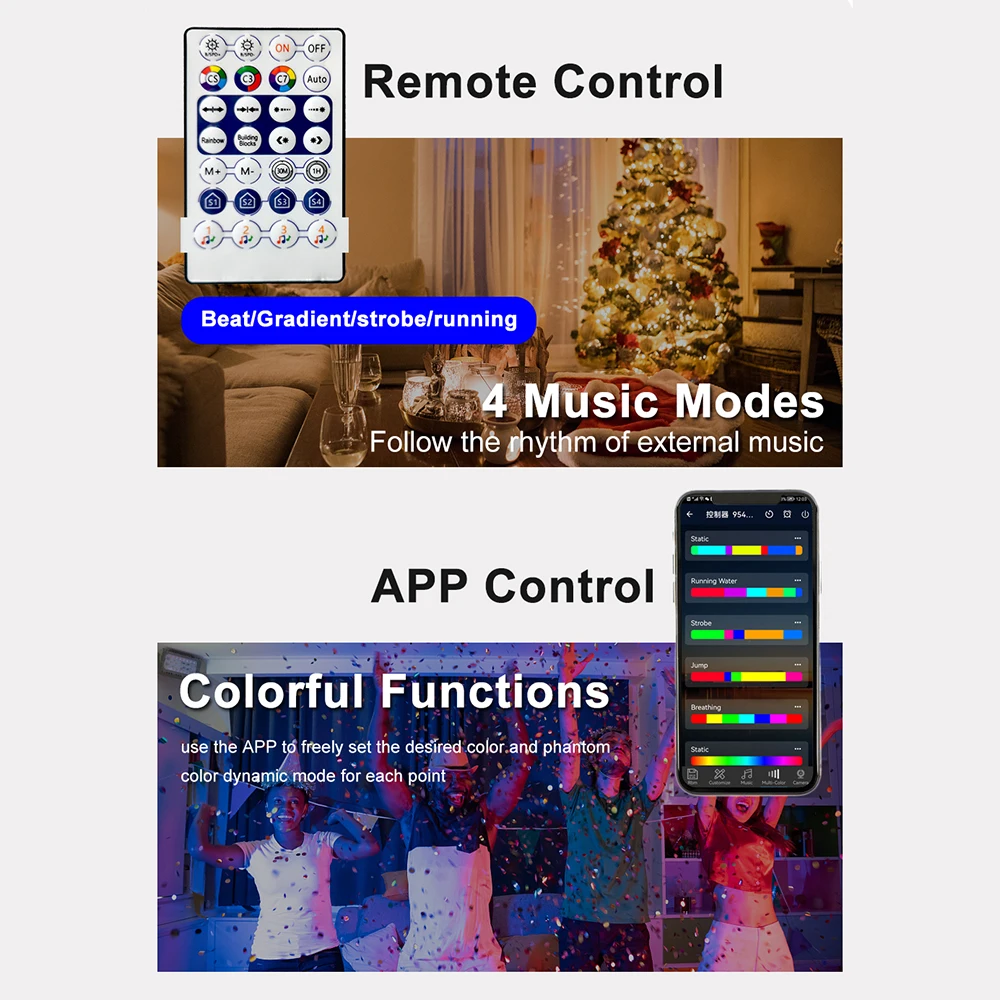 1. Мобильный телефон может использовать приложение для управления и регулировки цвета и яркости полосы светильник через smart bluetooth