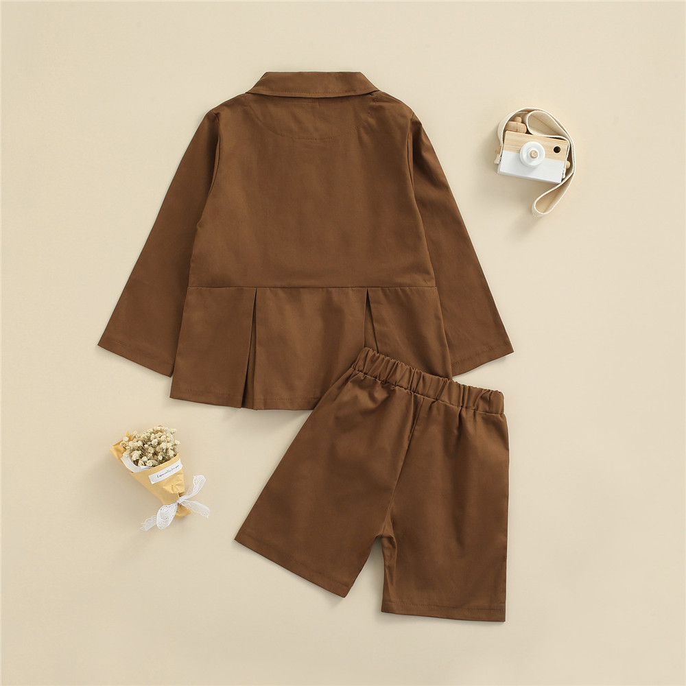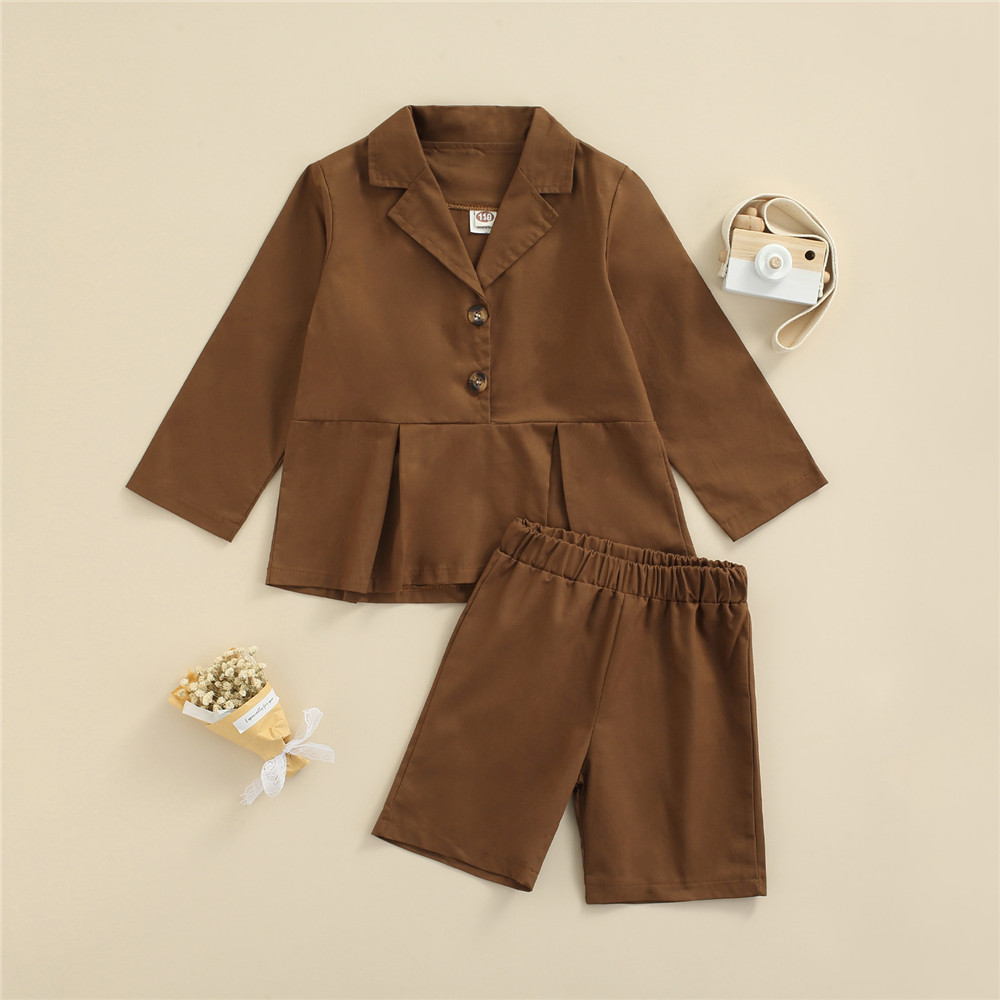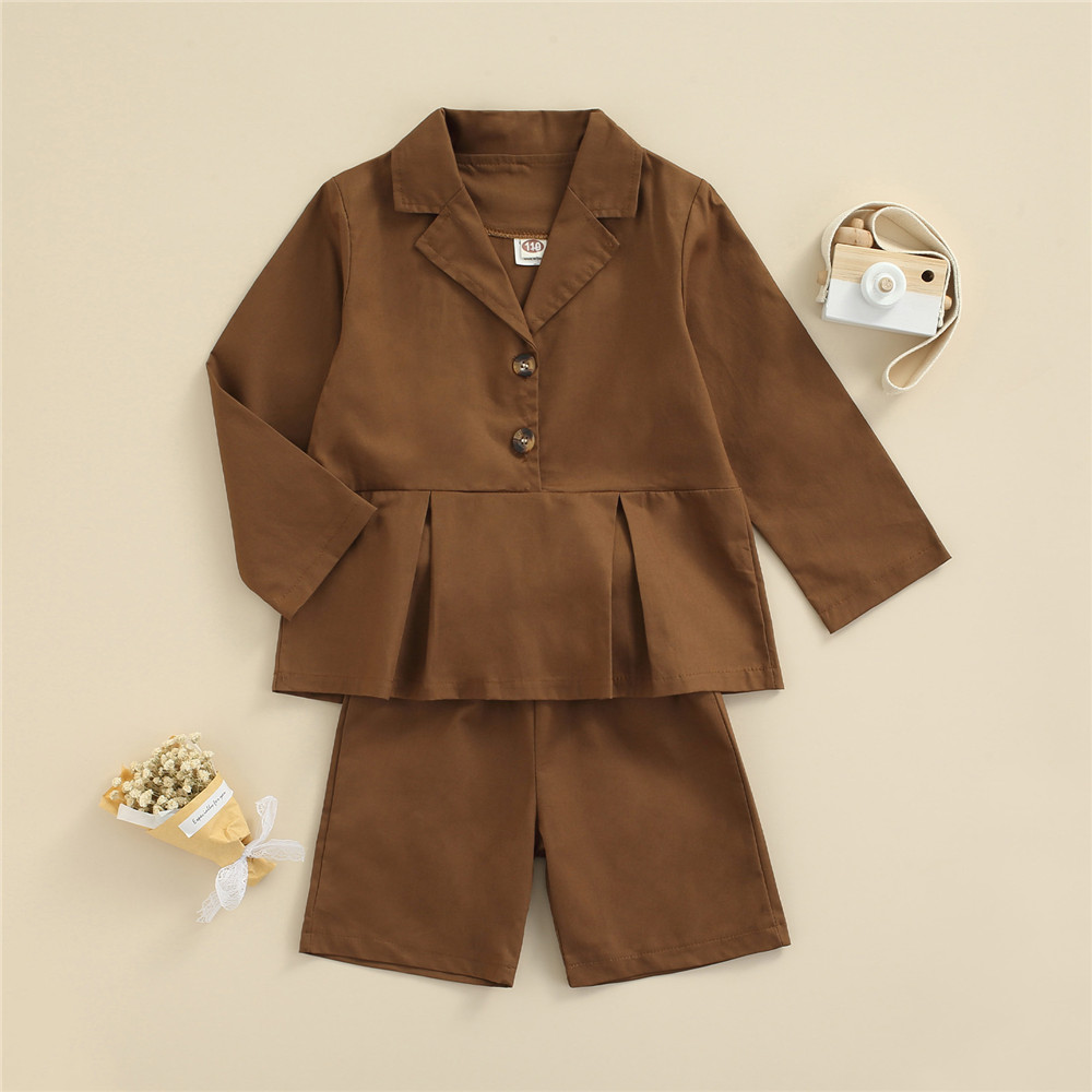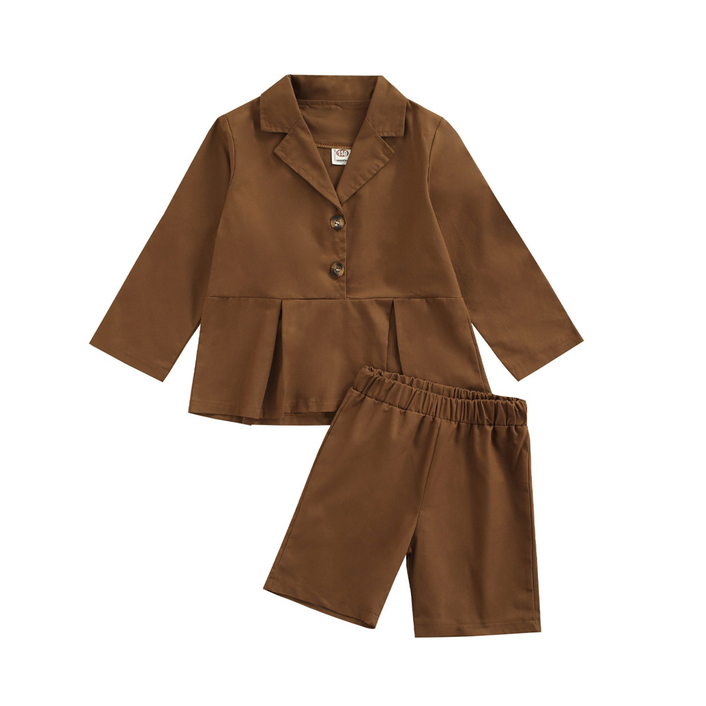 Осенняя одежда для девочек из 2 предметов однотонная блузка с длинными рукавами и воротником + свободные шорты для детейТаблица размеров: