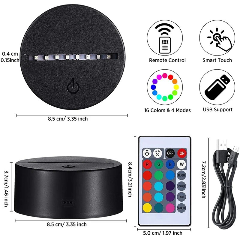 Ночные огни с эффектом 3D: базы управляемых ламп прекрасно подходят для ваших проектов и отображают ваши Акриловые пластины DIY; Ночные лампы создадут эффект 3D видения (Не настоящий 3D) светильник; Создает блестящую атмосферу в детской комнате или спальне, а светильник с регулируемой яркостью может использоваться для сна и наведения в ночное время