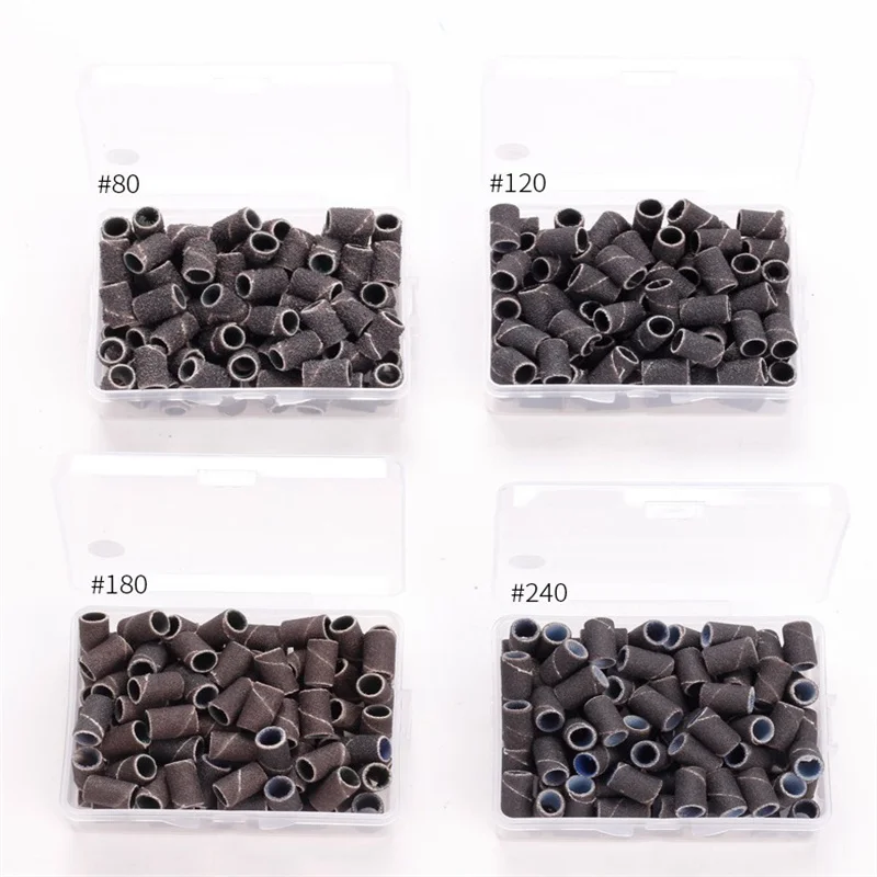 Отзывы о 100Pcs/Pack #80 #120 #180 #240 Grit Sanding Bands Manicure Pedicure Nail Electric Drill Machine Grinding Sand Ring Bit - купить по