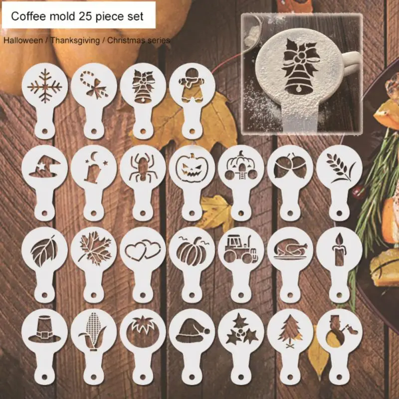25 шт./компл. смешанные рождественские стили для Хэллоуина капучино латте кофе трафареты торт плесень спрей DIY печать модель аксессуары
