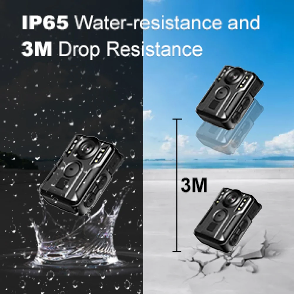 【 Красно-синие мигающие огни и звуковой сигнал/секретная запись activактивация кнопки будильника может мигать красно-синие огни/звуковой сигнал будильника может предупреждать/напоминать при применении закона. Полицейская камера оснащена секретной записью, предварительной/почтовой записью событий, удостоверением личности и печатью даты/времени видео. Ips-дисплей с динамиком для воспроизведения и просмотра.