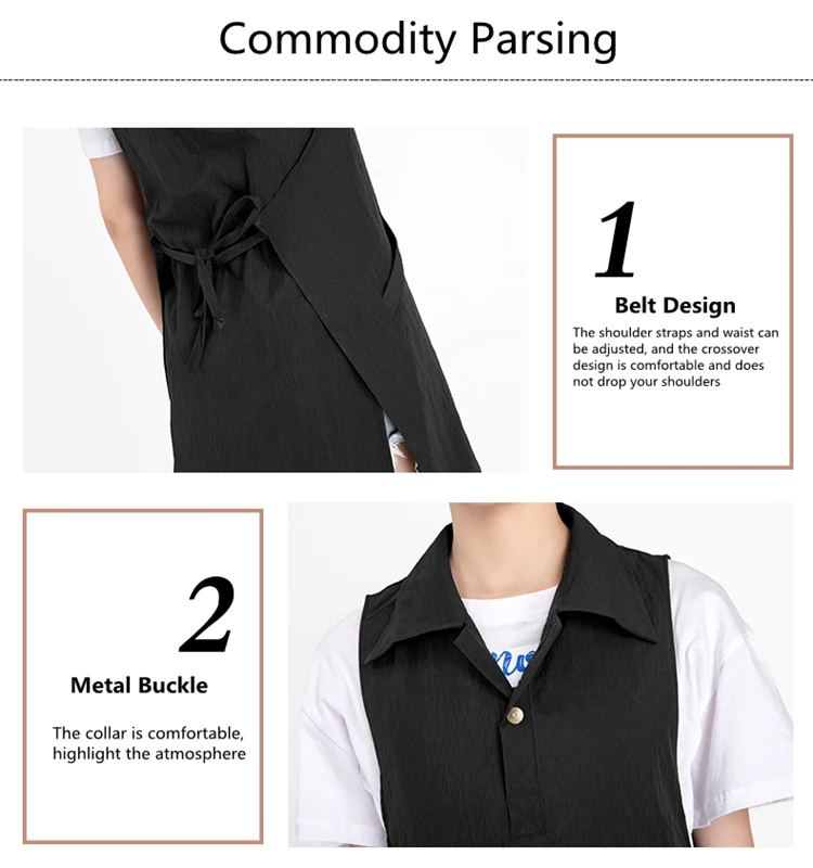 Можно использовать как парикмахерскую, салон красоты, маникюрный магазин, цветочный магазин, зоомагазин, кофейню, ресторанную рабочую одежду.Модный плечевой ремень, элегантный и простой стиль. Дизайн с ремешком сзади, легко регулируется, без ограничений для ношения.Умный карманный дизайн, идеально подходит дляУдерживая фиксаторы, булавки и заколки для волос. Это делает вас