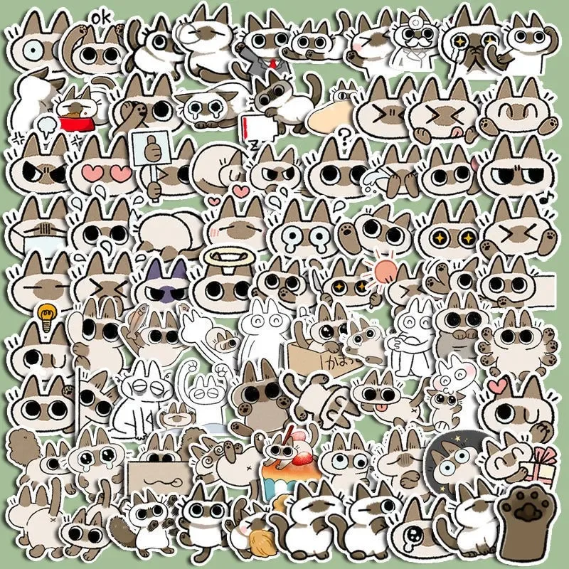 Отзывы о 100Pcs Cute Cartoon Stickers Ins Korean Version of Small Bean Paste Siamese Cat Phone Case Halloween Gifts Hot Selling - купить по