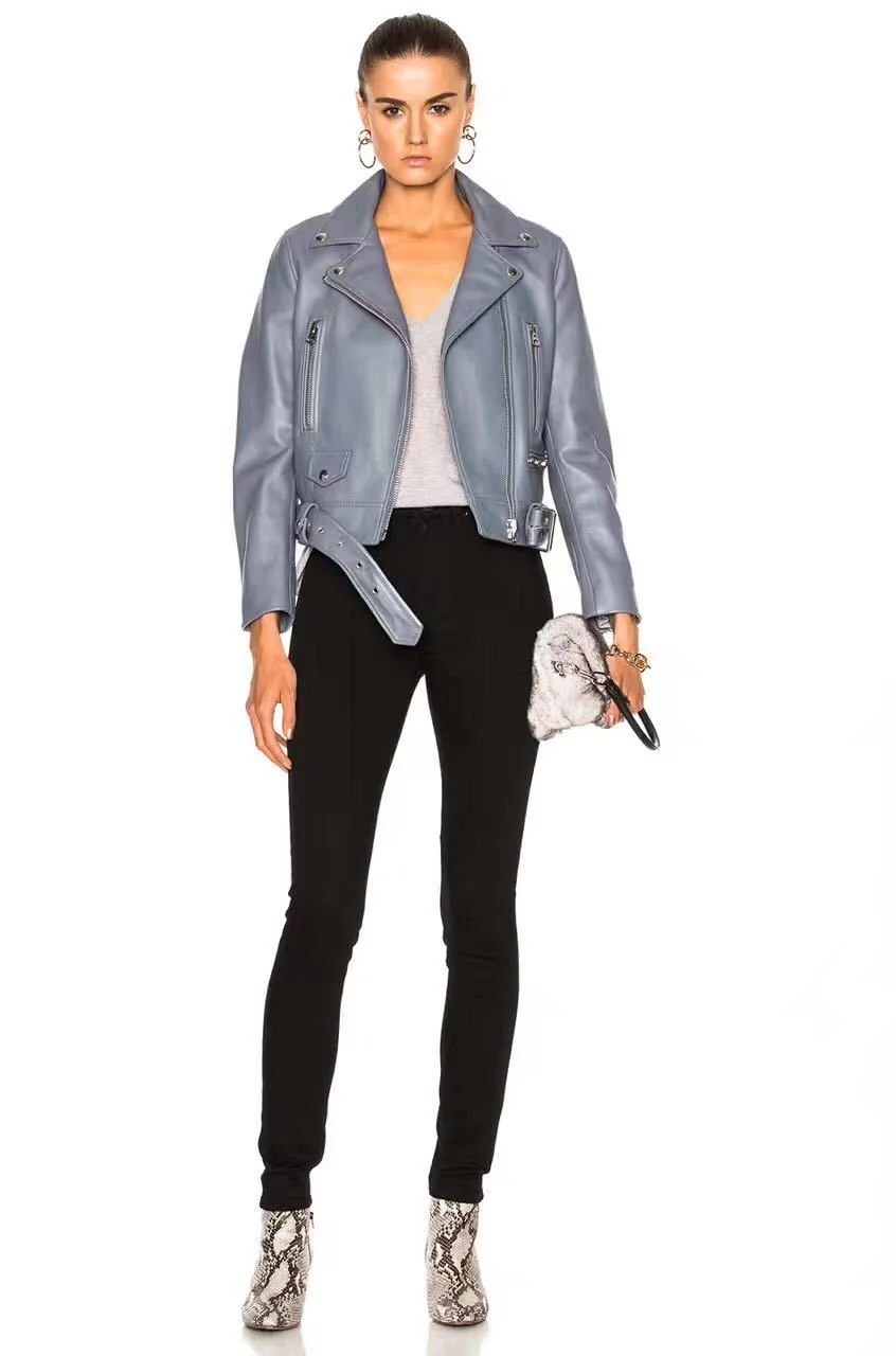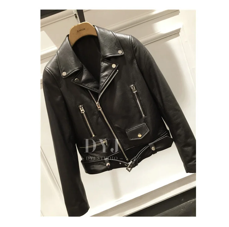 Отзывы о Кожаная Мотоциклетная кожаная куртка женская короткая из овечьей кожи