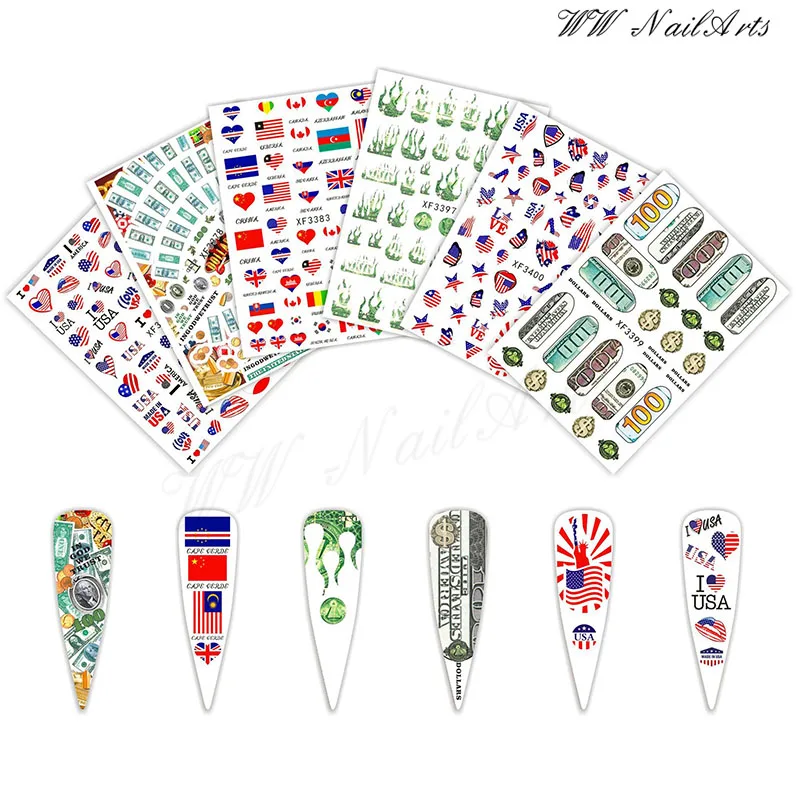 1 шт. горячая Распродажа стильных наклеек для ногтей валюта/национальный флаг/линия/дракон змея/Цветок Гель-лак слайдер аксессуары для дизайна ногтей наклейки
