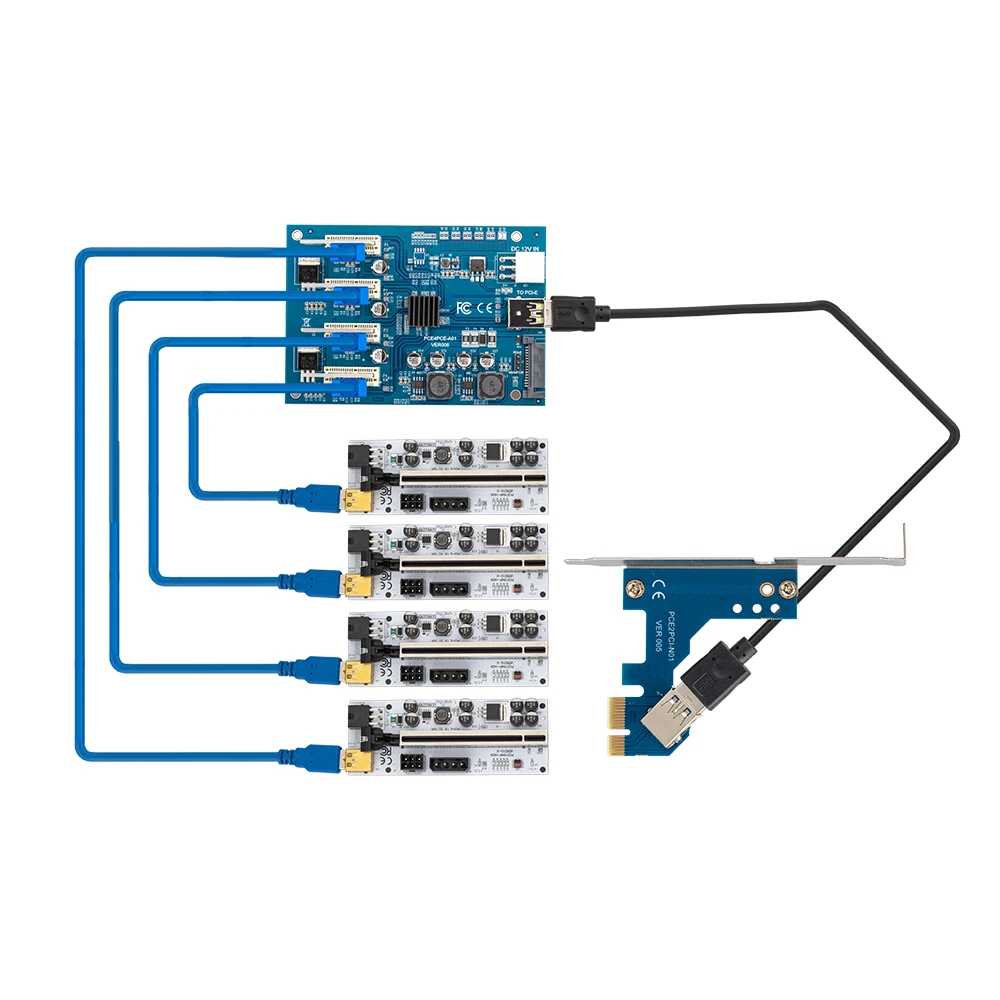 Наборы переходников версии 010X-это новейшее и верхнее линейное решение для настройки горных установок GPU. 4PIN и две графические карты 6PIN интерфейс являются необязательными для питания, что обеспечивает независимое питание графической карты и уменьшает нагрузку на материнскую плату при использовании большего количества графических карт. Светодиодный дисплей, 8 твердых конденсаторов, 60 см USB 3,0 кабель, подходит для всех оконных систем, LINUX и MAC.