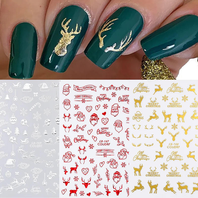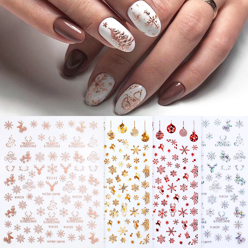 Отзывы о Рождественские 3D наклейки BORN PRETTY для дизайна ногтей золотые и белые снежинки