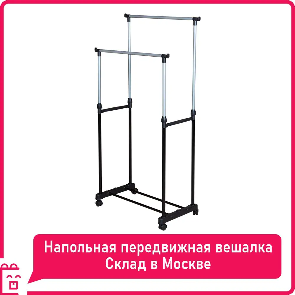 Вешалка пол для одежды на колесах двойной Полюс занимает минимум
